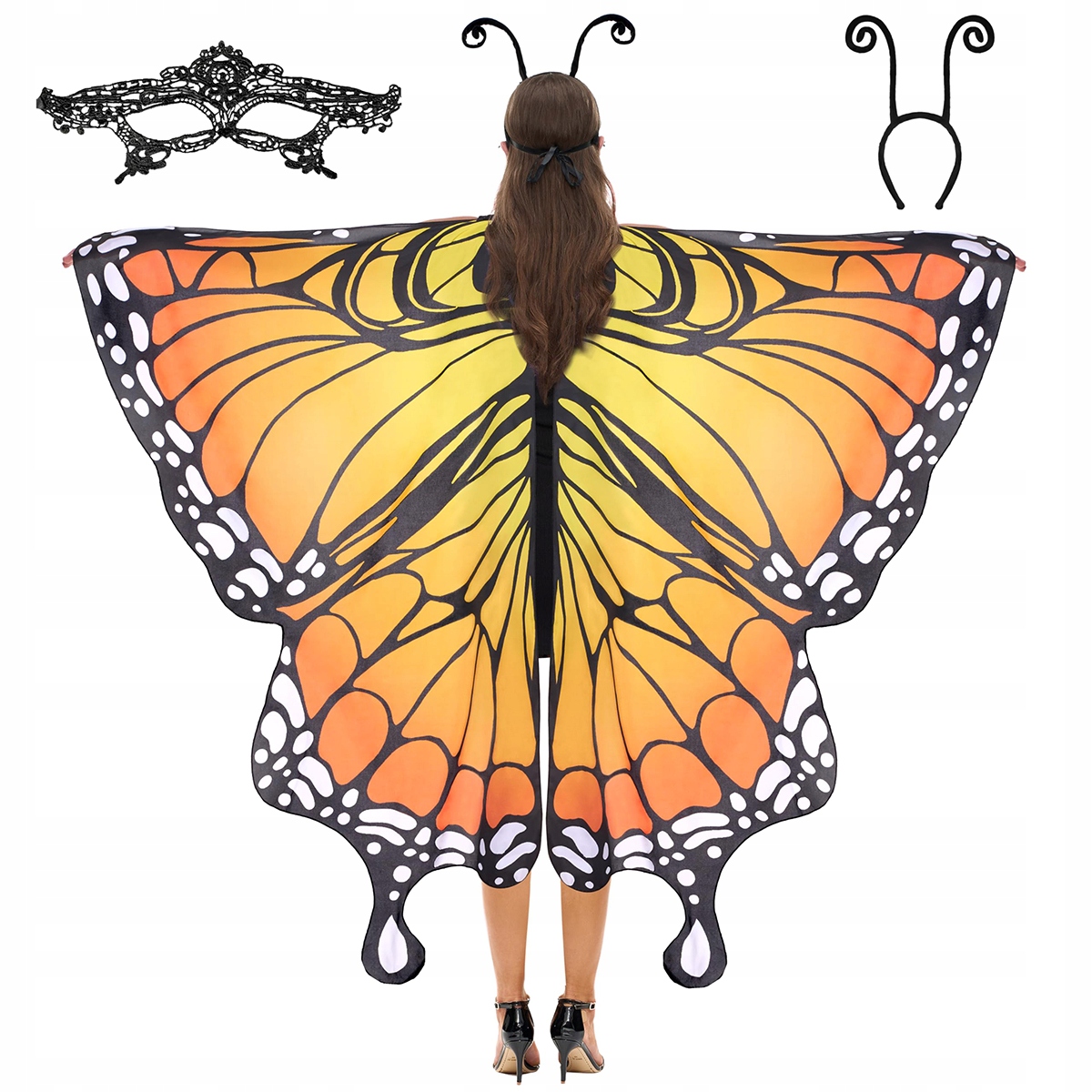 DAMSKA PELERYNA ZE SKRZYDEŁKIEM MOTYLA KOSTIUM COSPLAY 168cm +OPASKA +MASKA