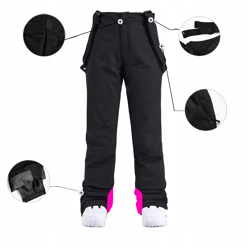 DAMSKIE SPODNIE NARCIARSKIE ZIMOWE SNOWBOARDOWE CZARNE SZELKI