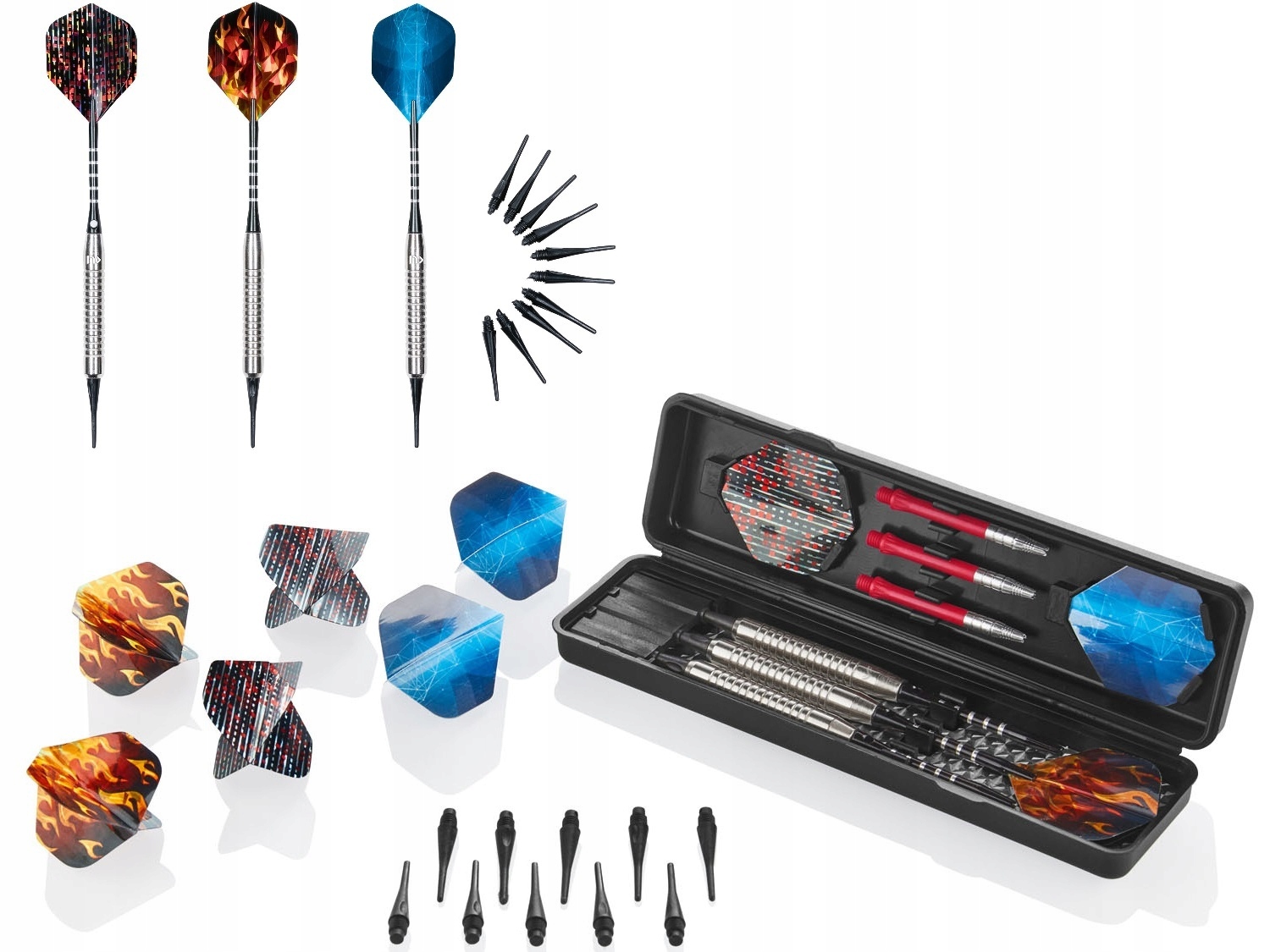 - 3 мягких дротика с пластиковым наконечником и профилированным стволом - подходят для электронных дартс.