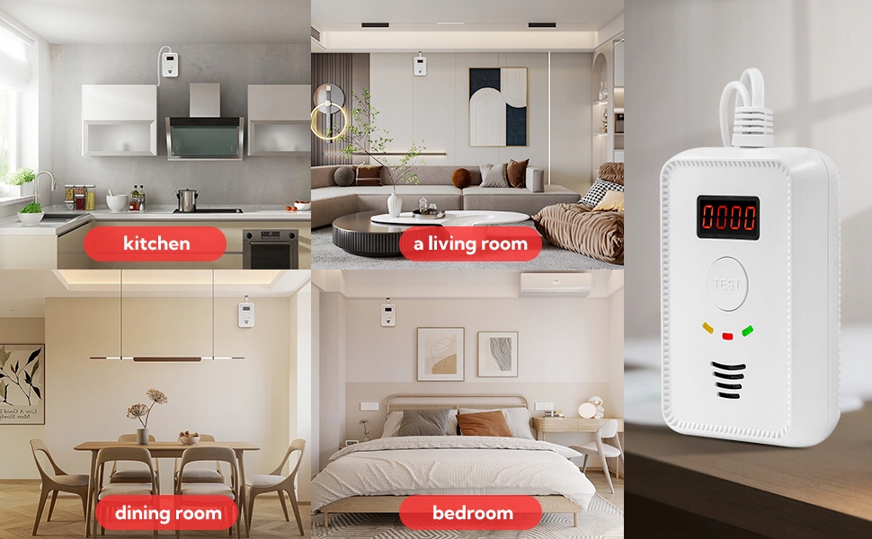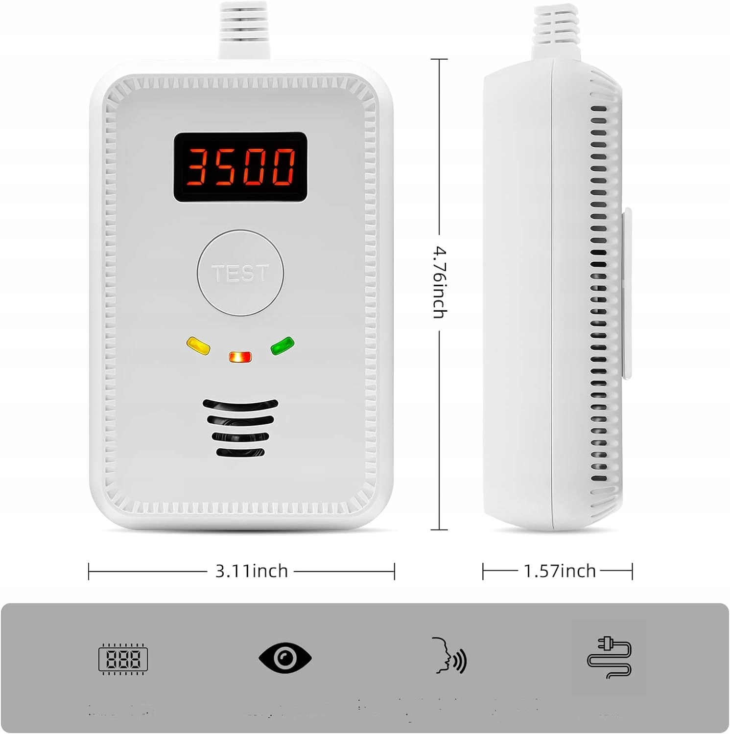 - Датчик: полупроводниковые/каталитические датчики; обнаруживать угарный газ и горючие газы, такие как природный газ, метан.