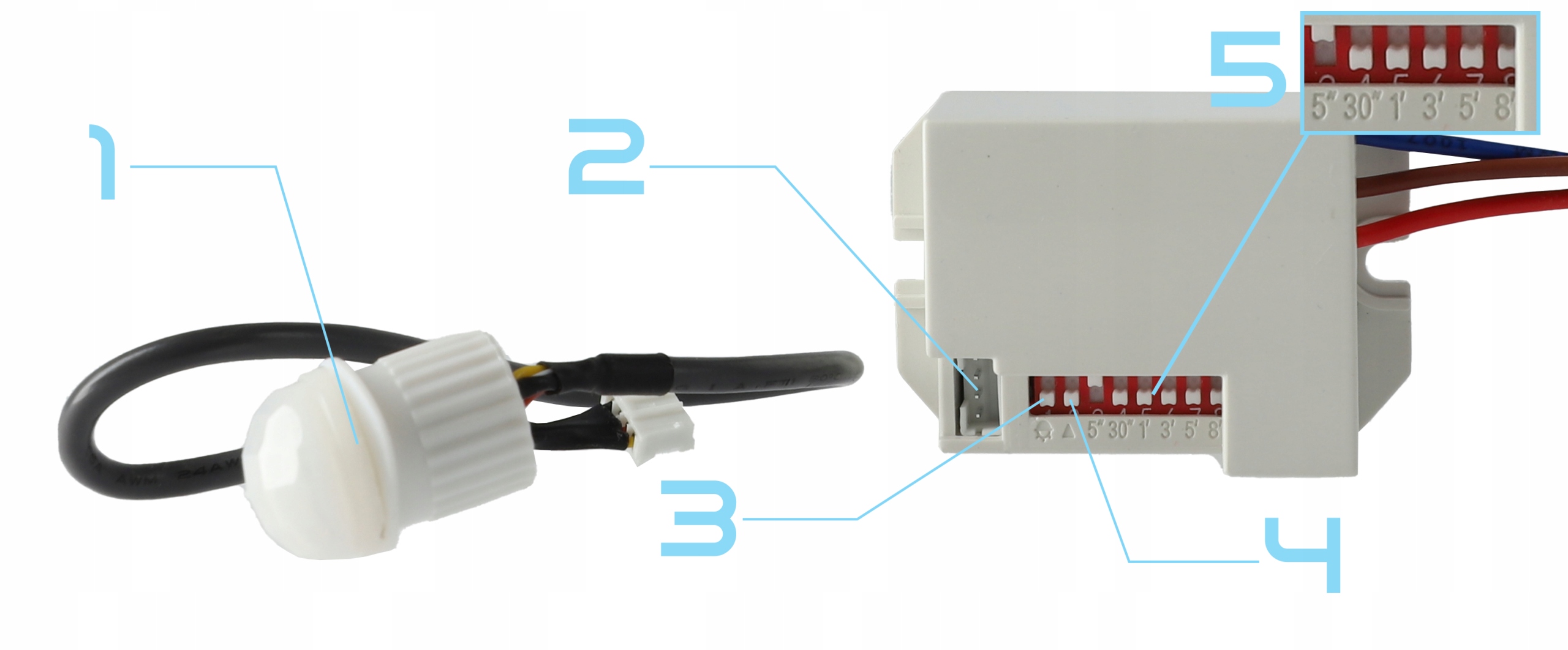 ✔️ Цепь замыкается после обнаружения движения и действует в течение установленного времени. , которое можно регулировать на устройстве (диапазон от 5 секунд до 8 минут)