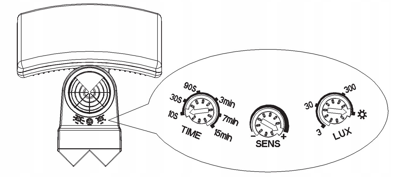 - Регулировка времени освещения, задержки времени и порога освещенности.