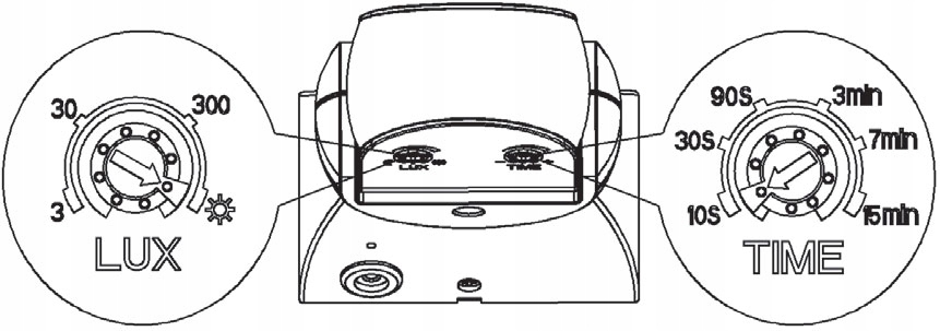 С помощью потенциометра времени задержки устанавливаем время, через которое освещение должно выключиться с момента обнаружения датчиком последнего движения. Чтобы увеличить время задержки, поверните потенциометр по часовой стрелке. Максимальная временная задержка составляет примерно 5-9 минут. Чтобы уменьшить время задержки, поверните потенциометр против часовой стрелки. Минимальная временная задержка составляет 7-13 секунд.