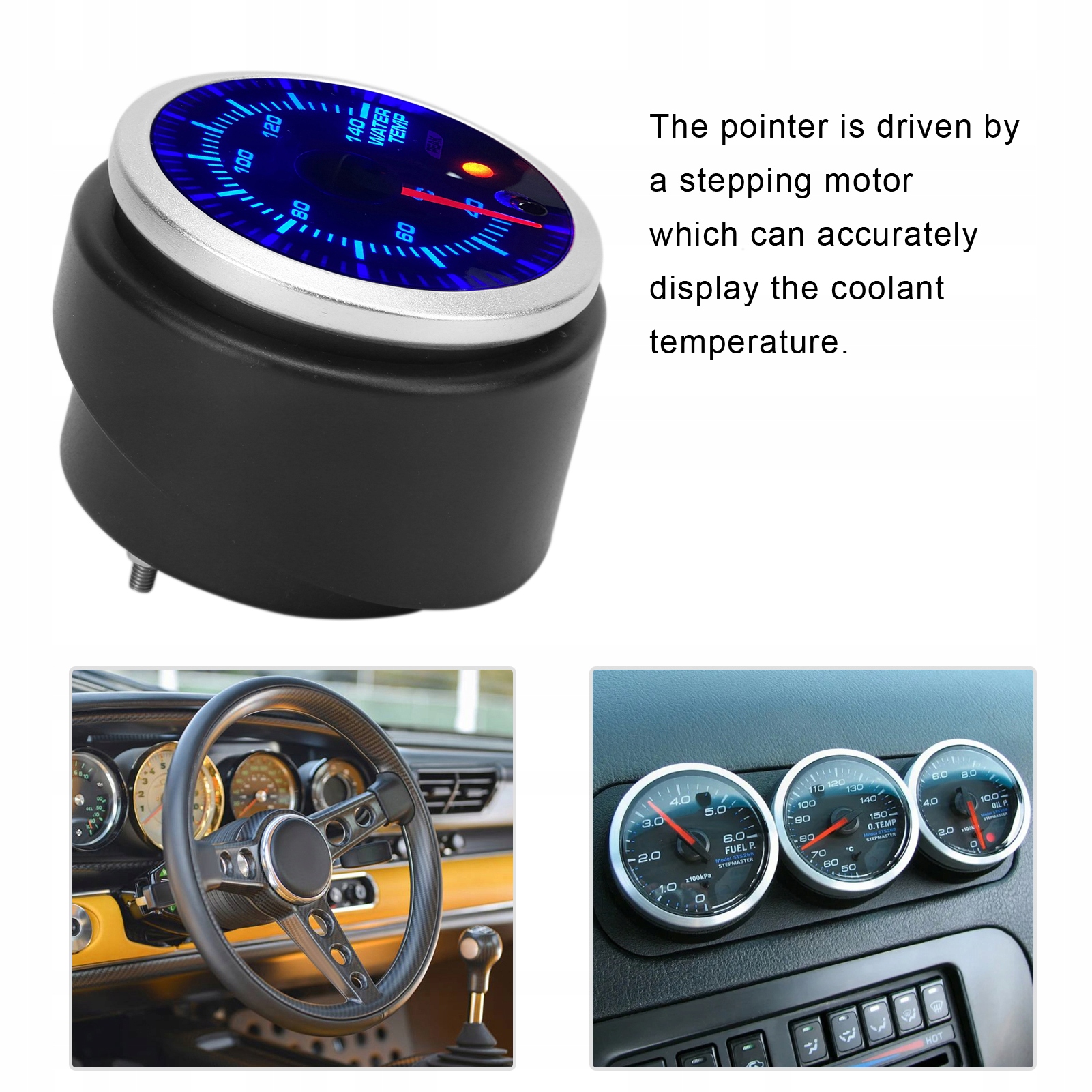 1. Измеритель температуры воды предназначен для контроля и отображения температуры охлаждающей жидкости, протекающей через радиаторную систему легкового или грузового автомобиля. Имеет черный циферблат, тонированные линзы и подсвечивающийся красный индикатор.