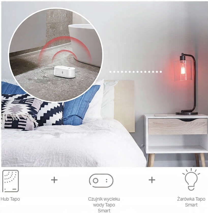 С помощью Smart Action в приложении Tapo вы можете подключить интеллектуальный датчик утечки воды к умному фонарю. Прежде чем произойдет бедствие, ваша лампочка подаст визуальный сигнал тревоги.