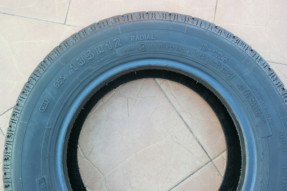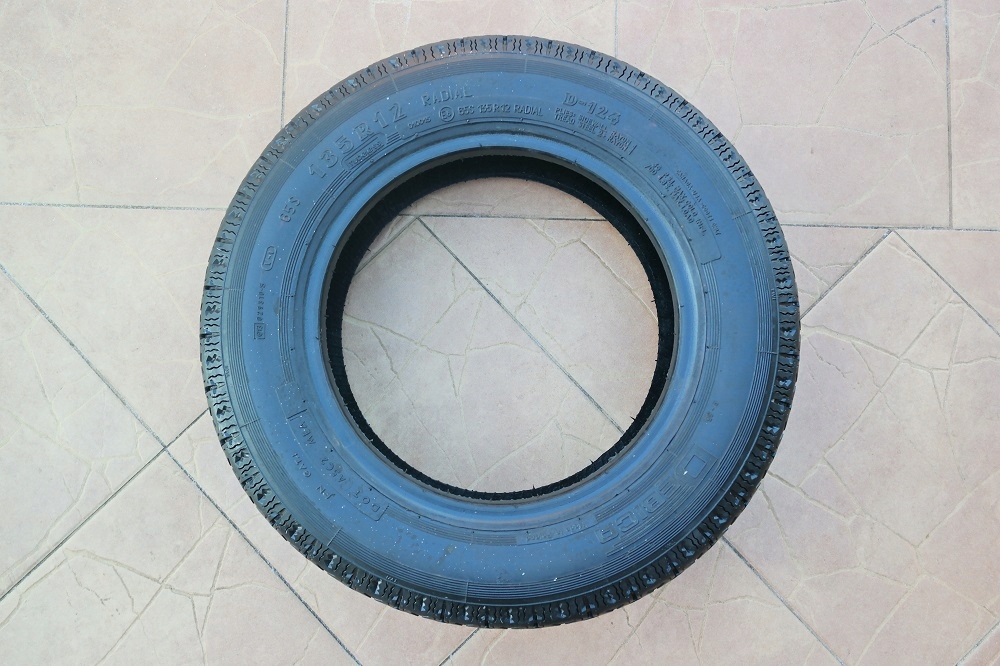 Шина находится в очень хорошем техническом состоянии. Уровень протектора высокий. Резина посвящена Fiat 126p.