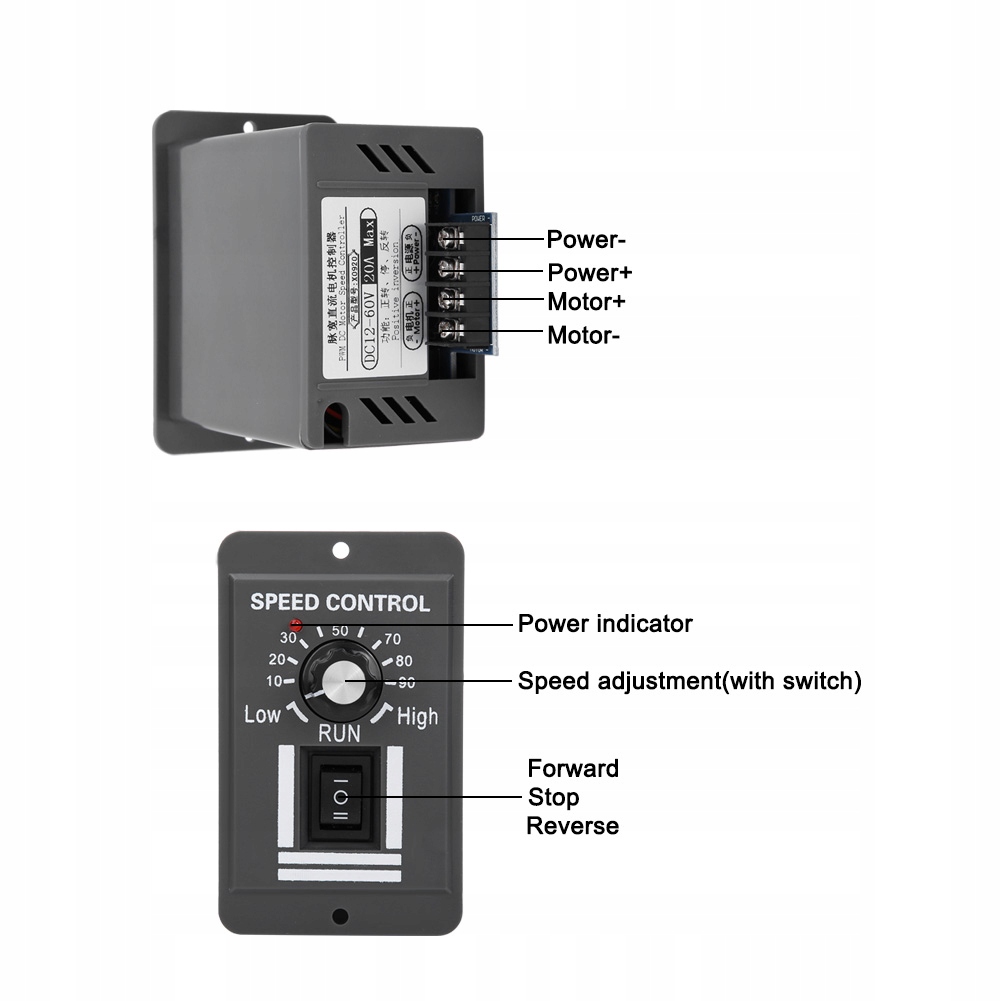 Этот регулятор скорости двигателя поддерживает функции остановки, вперед и назад, делая его более гибким и удобным в использовании.