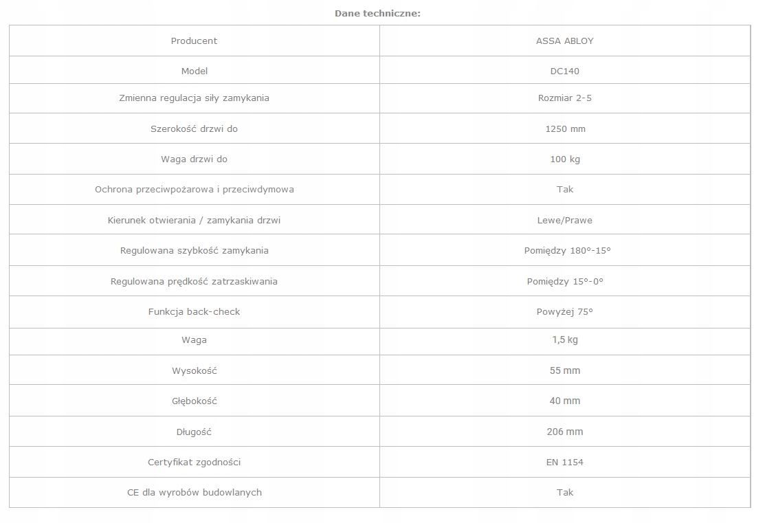Просматривая «DC140 ДВЕРНОЙ ДОВОДЧИК ДЛЯ НАРУЖНОЙ ДВЕРИ + ПЛАСТИНА», вы можете быть уверены, что данный товар из каталога «Самозакрывающиеся» будет доставлен из Польши и проверен на целостность. В цене товара, указанной на сайте, учтена доставка из Польши. Внимание!!! Товары для Евросоюза, согласно законодательству стран Евросоюза, могут отличаться упаковкой или наполнением.