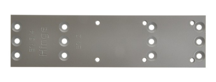 Монтажная пластина для доводчика используется в тех случаях, когда сверление сквозных отверстий в конструкции двери нецелесообразно или когда в дверной коробке нет отверстий, достаточно места для установки доводчика. В частности, он используется для противопожарных дверей.
