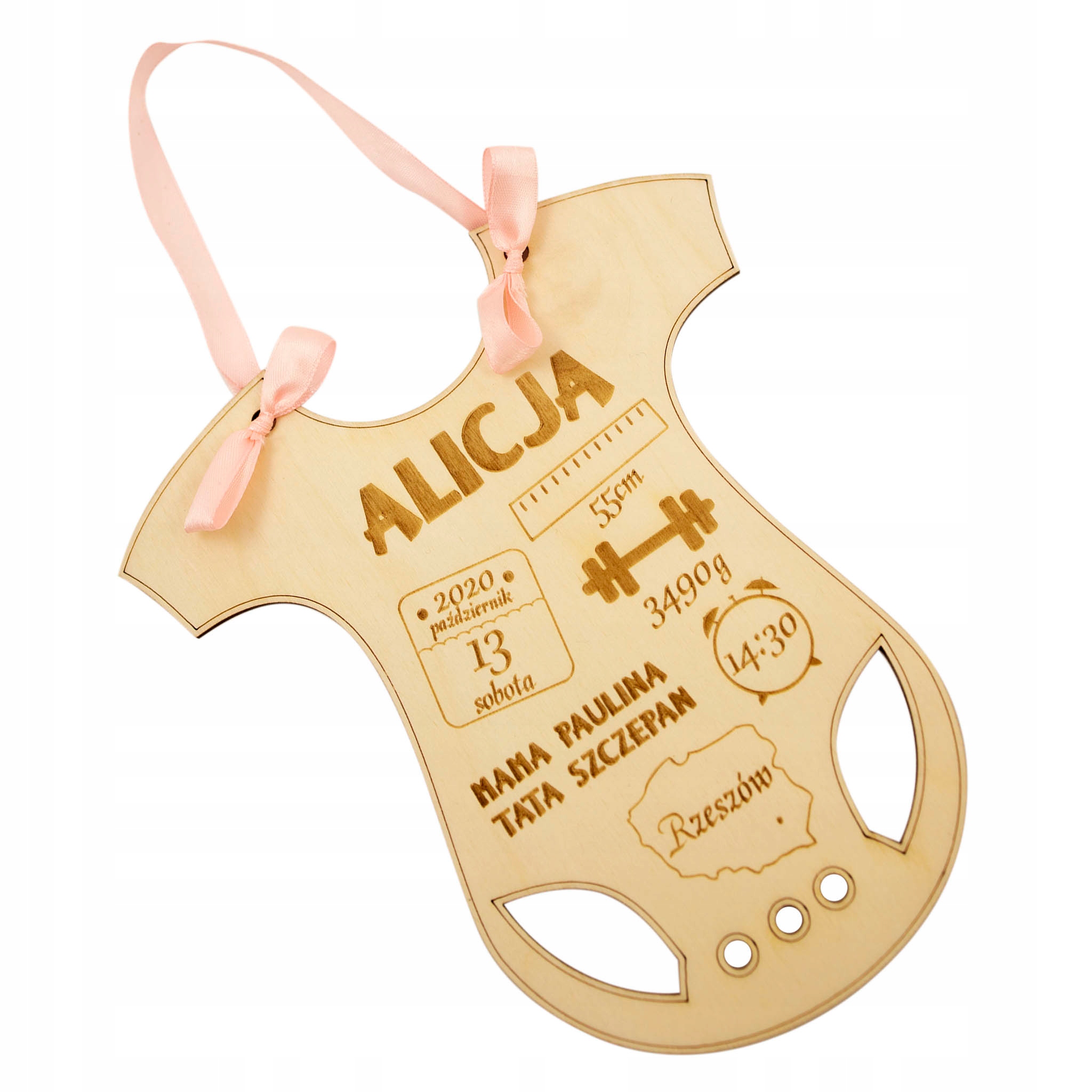 Свидетельство о рождении изготовлено из высокопрочного материала. качественная берёзовая фанера. Имеет декоративный акцент в виде атласной ленты, розовой для девочки, синей для мальчика.
