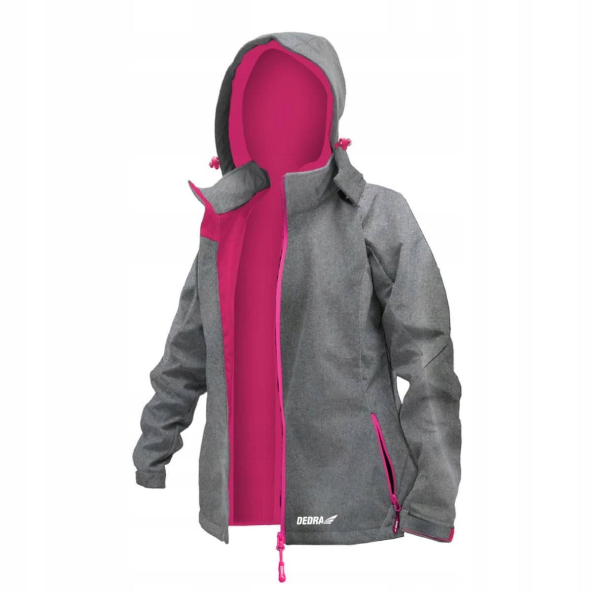 Куртка женская с капюшоном из материала softshell с мембраной ТПУ. Мембрана обеспечивает ветронепроницаемость, водонепроницаемость 5000 мм и воздухопроницаемость 800 г/м²/24 часа (мпв) при плотности 310 г/м². Куртка имеет подкладку из микрофлиса розового цвета. Два кармана застегиваются на водонепроницаемую молнию. Капюшон на шнурках, отстегивается на молнии. Манжеты на липучках и отделка на талии позволяют куртке идеально сидеть по фигуре. Застегивается на молнию. Доступные размеры от XS до XXL