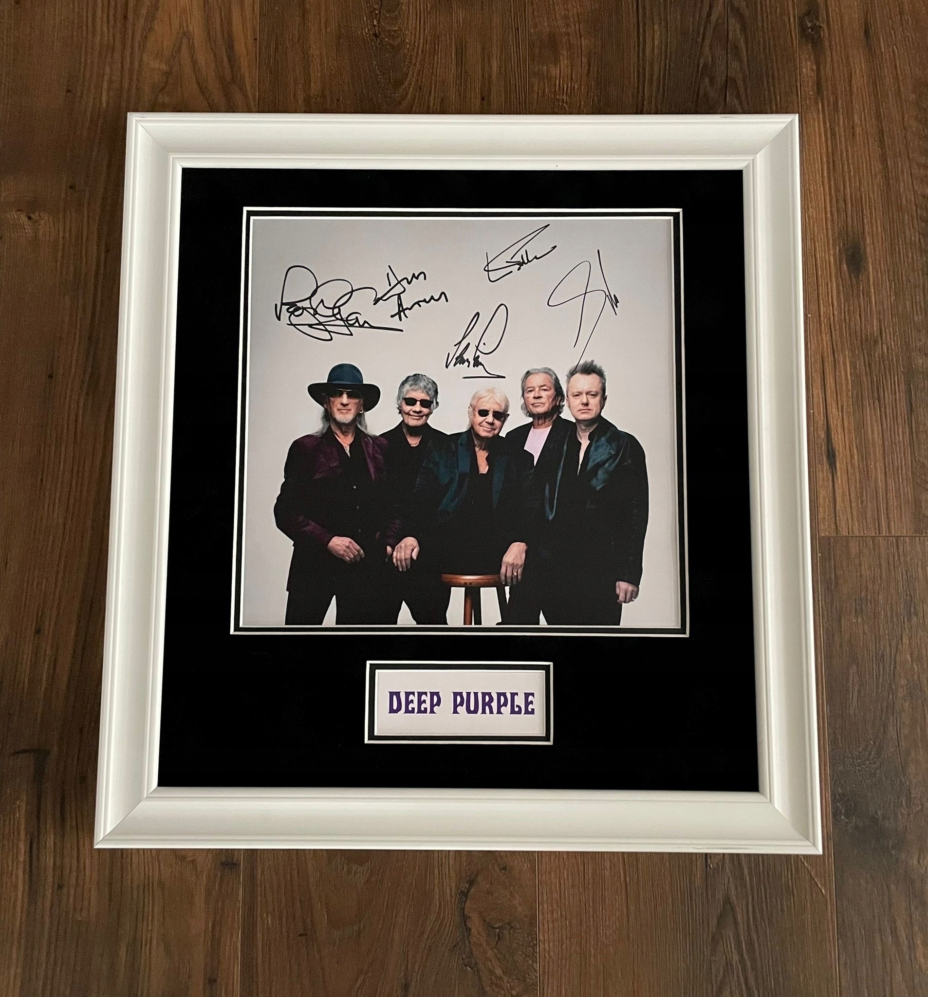 Deep Purple - рамка с фотографией с собственными автографами группы + СЕРТИФИКАТ. Они идеально подходят для показа в рамке для собственной коллекции или в качестве уникального подарка близкому человеку. Он имеет сертификат подлинности COA.