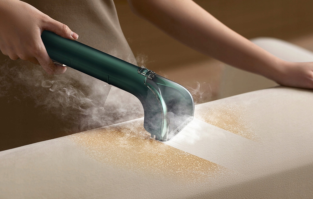 Устройство потребляет мощность 1650 Вт и нагревается за 30 секунд, производя пар температурой 100°C, эффективно удаляя стойкие пятна. Кроме того, он удаляет пылевых клещей и бактерии — идеально подходит для аллергиков.