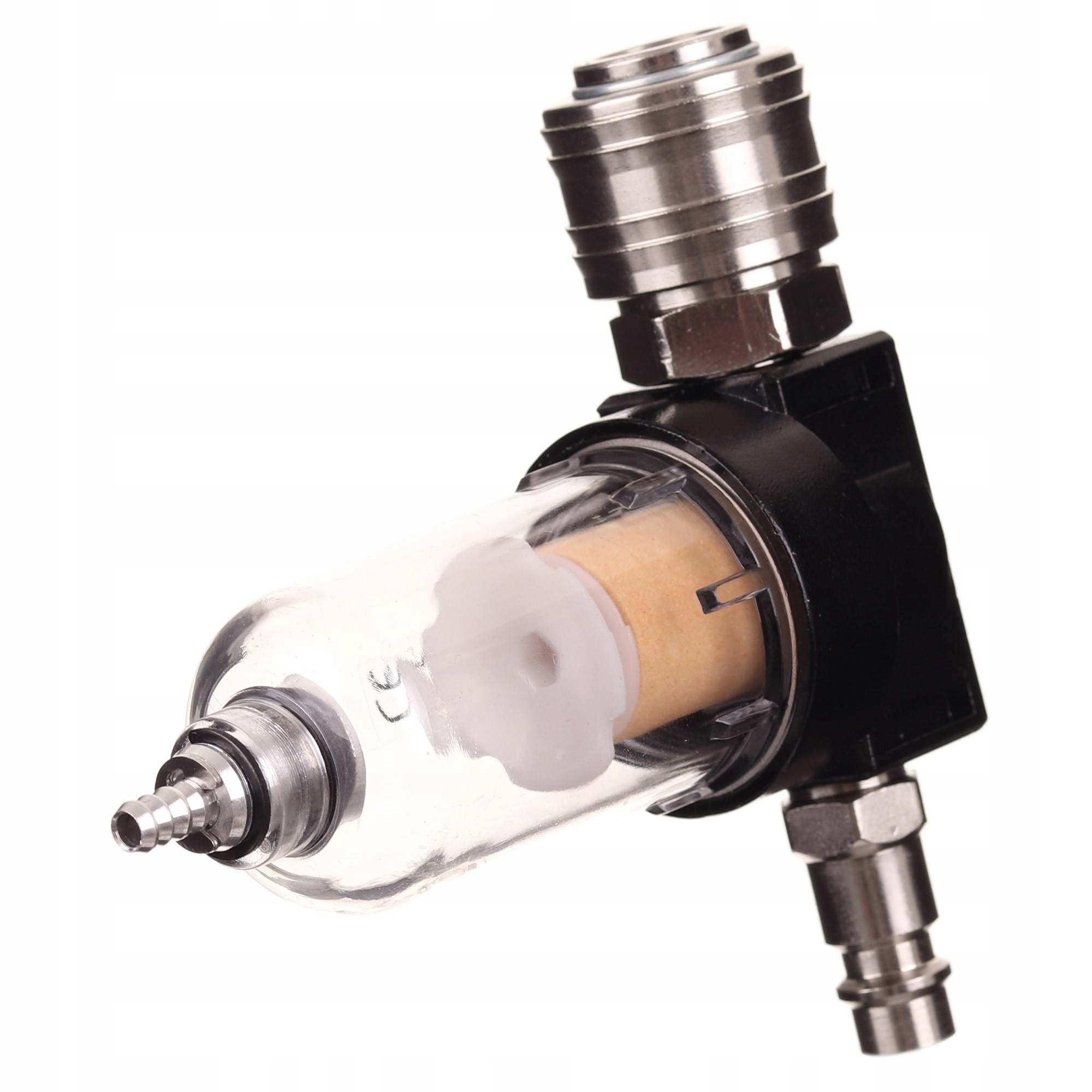 Фильтр используется для сухости воздуха. Это важный элемент любой пневматической установки. Используя этот фильтр, вы предотвращаете, среди прочего; Ржавчина инструментов, пятна при покраске пистолетами с краской, повреждением шланга и т. Д. Фильтр очищает воздух воды, грязи и масла .