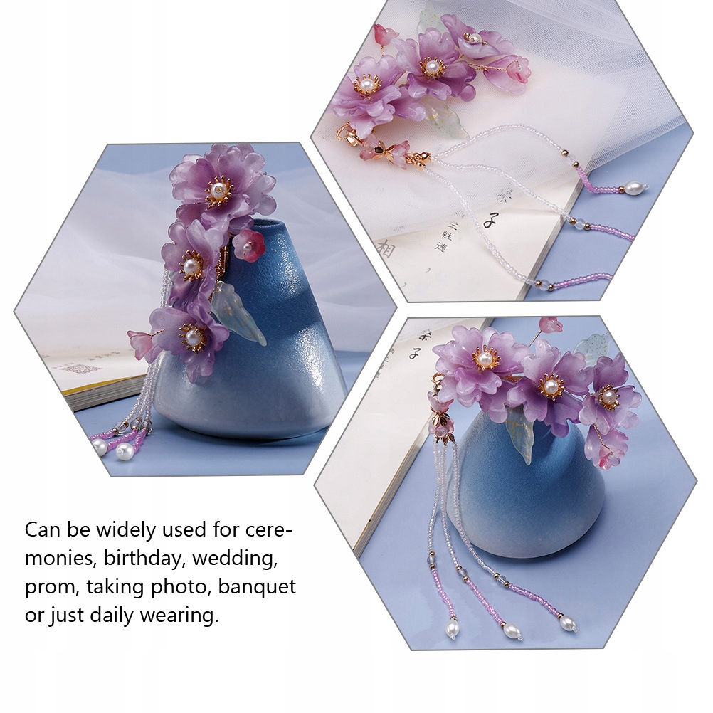 ✅Отличное мастерство, продуманное до мелочей, придает этой заколке уникальный вид. Использование акриловых материалов, легких и прочных для длительного использования. Цветочный дизайн, китайский стиль, декор с бахромой, очень красиво, вы можете подарить его своим детям, жене, подругам или подругам, разделить с ними гораздо больше радости.