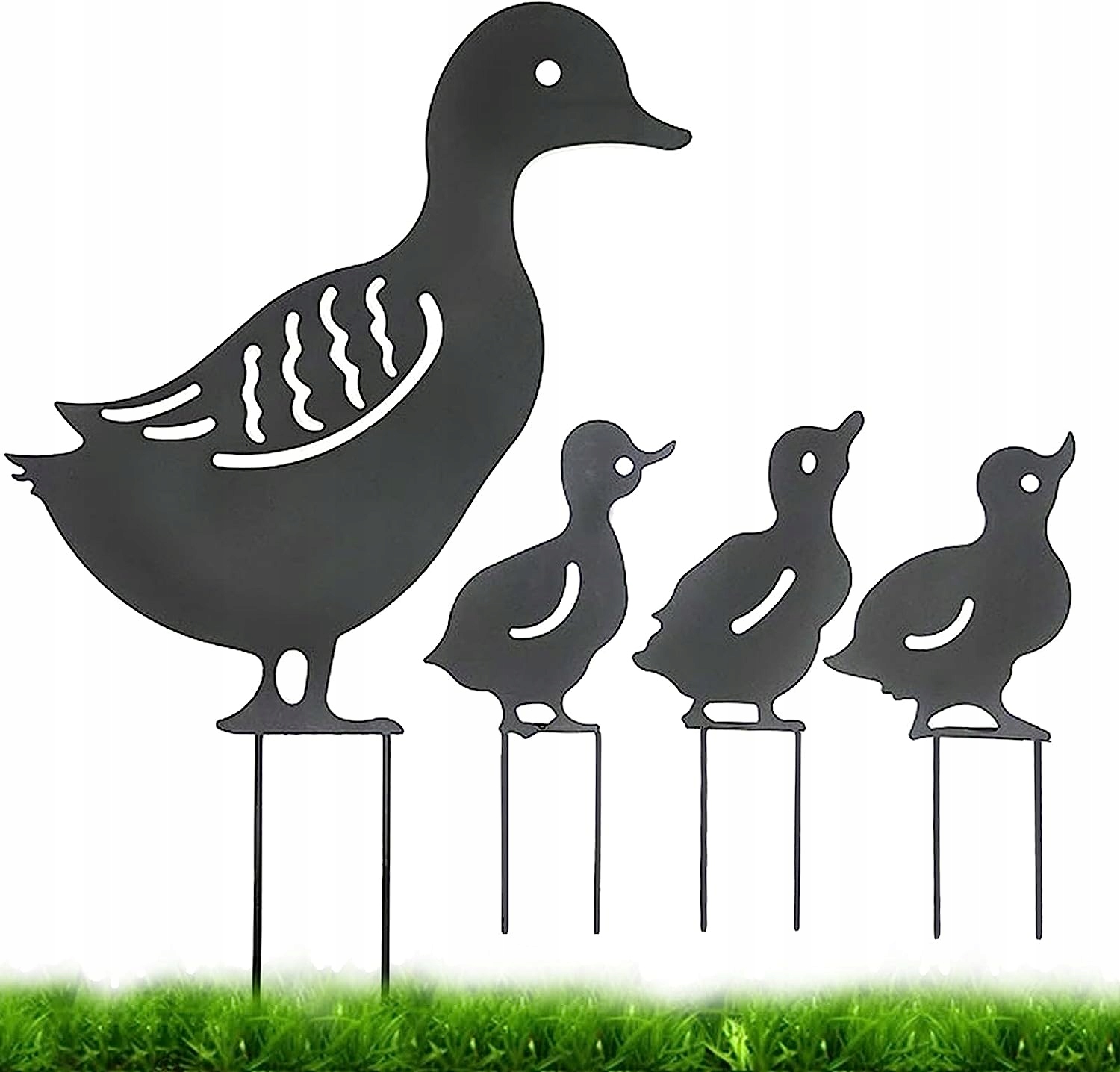 КРАСИВЫЕ УКРАШЕНИЯ ДЛЯ САДА «УТИНАЯ СЕМЬЯ» (3 МАЛЕНЬКИХ И 1 БОЛЬШОЙ) ИЗ НЕРЖАВЕЮЩЕЙ СТАЛИ