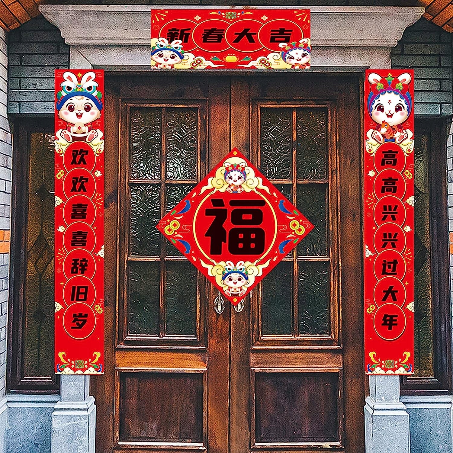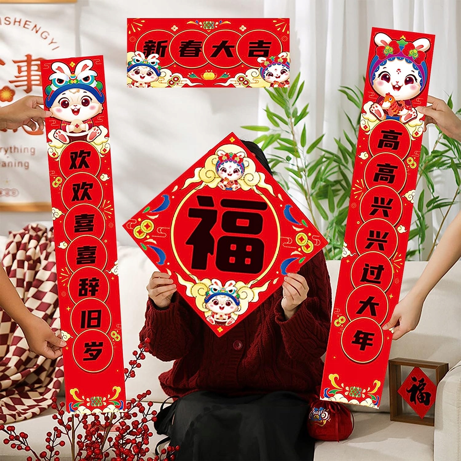 Китайские новогодние куплеты изготовлены из высококачественной, прочной мелованной бумаги, с четкой и яркой красочной печатью, содержащей фразы, выражающие пожелания или благословения на следующий год. Классический красный цвет, приносящий удачу. Китайские иероглифы Фу символизируют счастье, богатство и здоровье. Чтобы приклеить китайские куплеты, можно использовать скотч или клей.