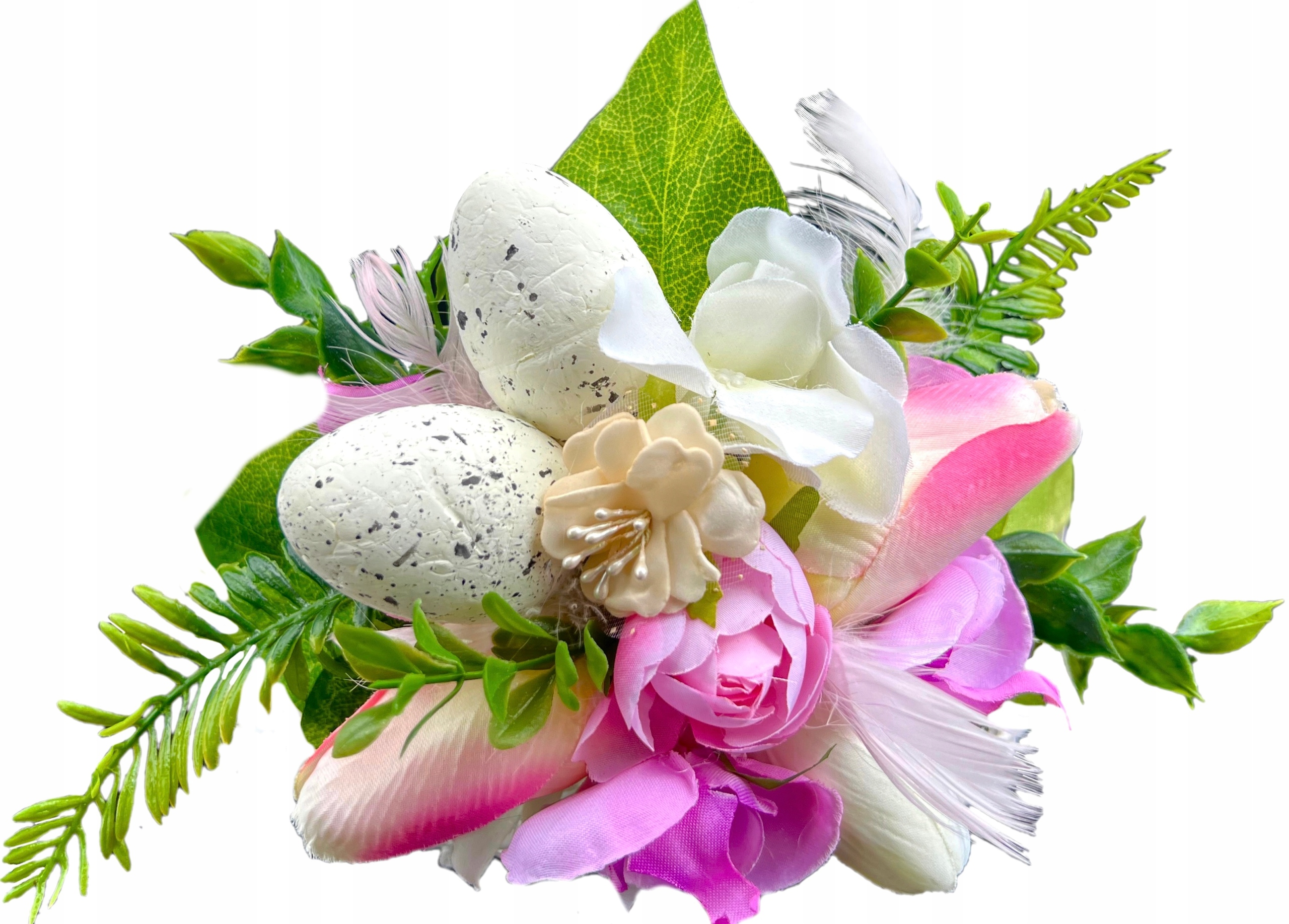 - в украшение входит зеленые аксессуары, цветы, пенопластовые яйца, перья, ленты,