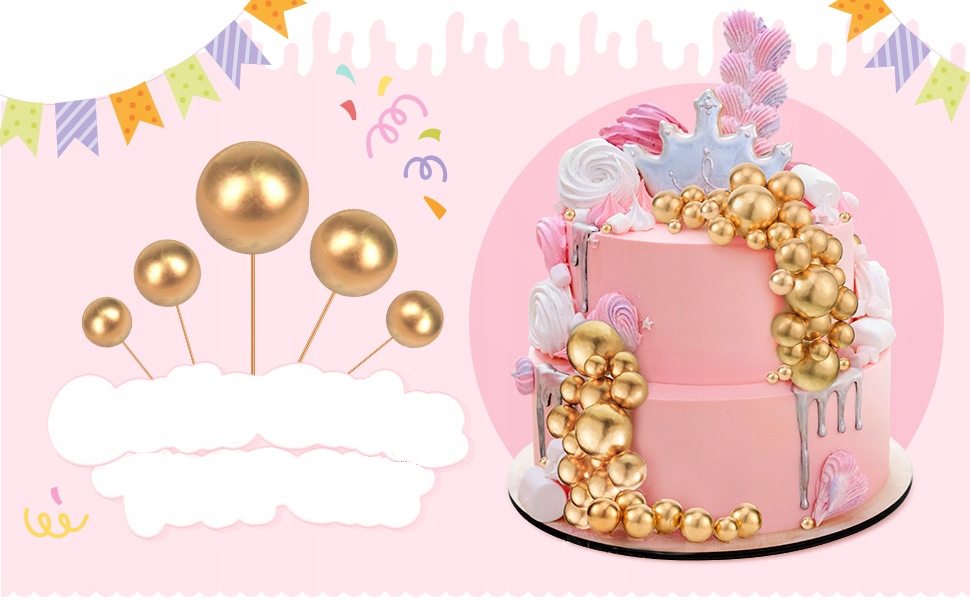 Широкое применение: Вставные шарики для торта можно использовать для праздничных тортов, кексов, закусок и других десертов, чтобы они выглядели более вкусно; Эти топперы для тортов станут идеальным украшением вечеринок по случаю дня рождения, детского праздника, помолвки, свадьбы, юбилея, Дня святого Валентина, Рождества и т. д.