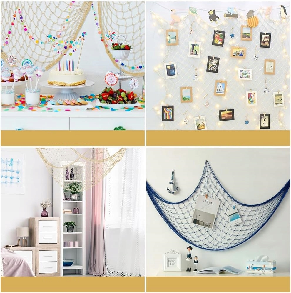 Придайте атмосферу морского приключения в своем доме с помощью нашей большой кремовой декоративной рыболовной сети. Это впечатляющее украшение в винтажном стиле станет прекрасным элементом дизайна интерьера, придав помещению неповторимый приморский шарм. Изготовленная из натуральных материалов, рыболовная сеть прекрасно впишется как в современный, так и в классический интерьер, придав ему неповторимый характер.