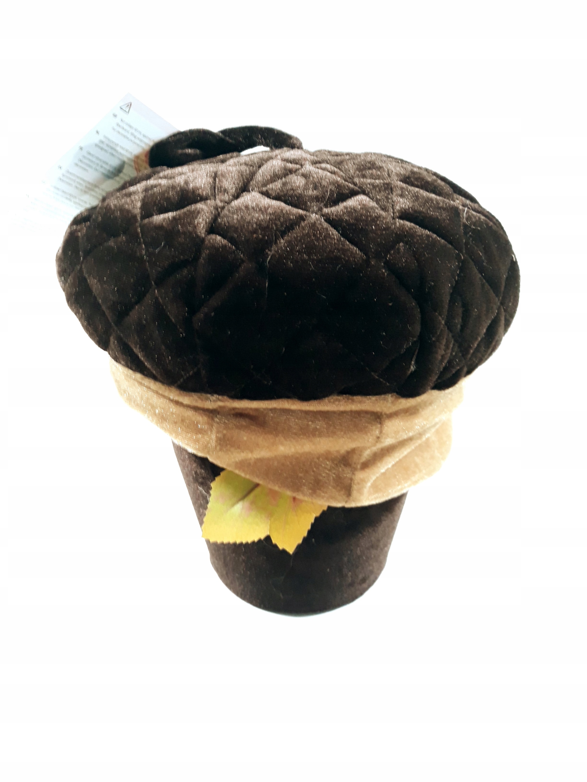 Необычное украшение, изображающее белку в горшке, над которой висит большой желудь.