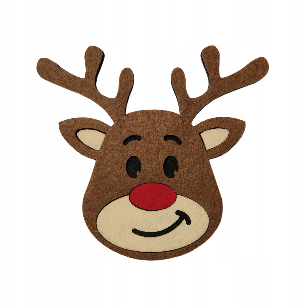 Коричневый улыбающийся олень с красным носом