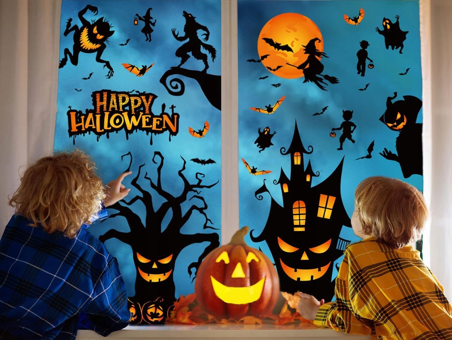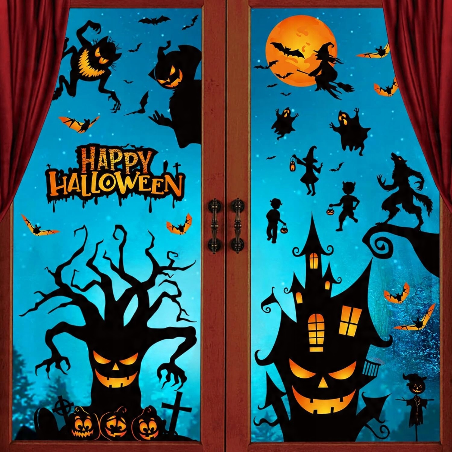 DEKORACYJNE NAKLEJKI WLEPY DWUSTRONNE NA SZYBĘ OKNO HALLOWEEN 9 ARKUSZY