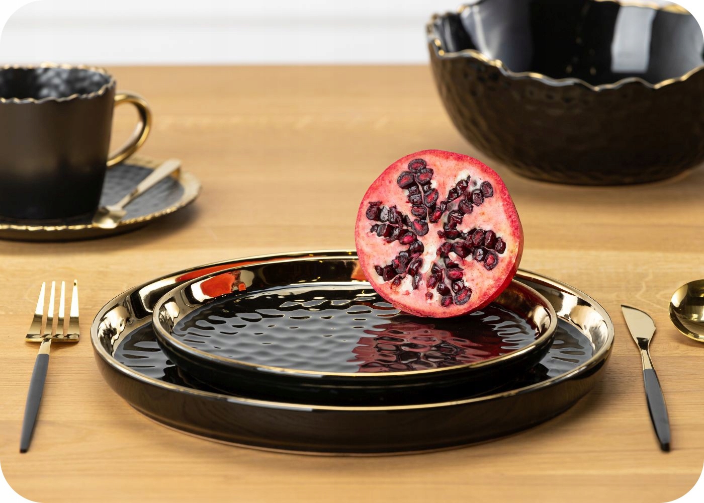 ✅ Выполнен из черной керамики, покрыт золотой краской. Диаметр сосуда 20 см.