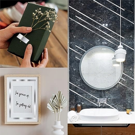 Декоративная декоративная полосатая лента Self -адгезивный серебряный декор 1 см х 50 м