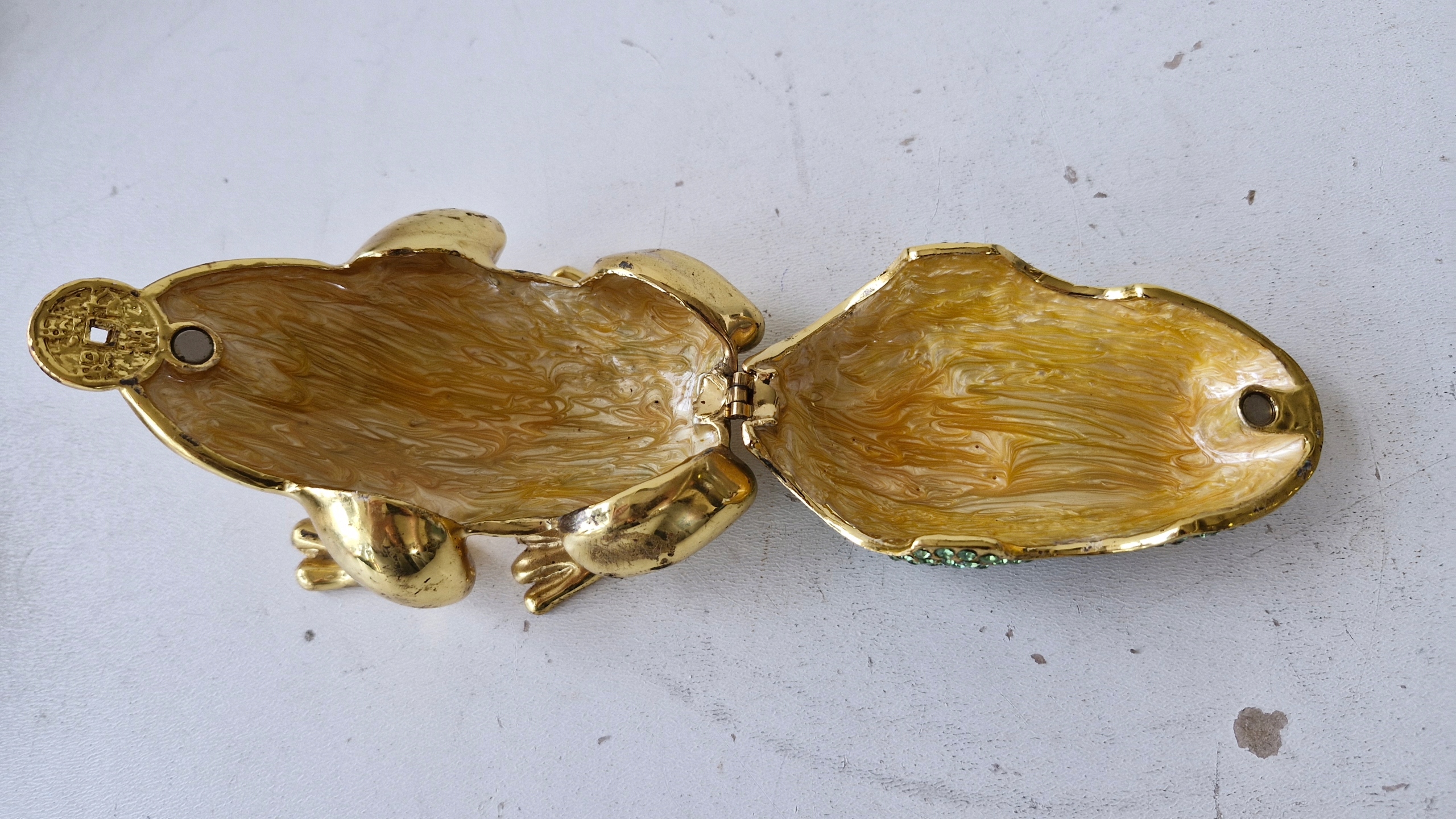 Декоративная латунная шкатулка с блестками на ювелирных изделиях лягушки хорошее состояние gwr
