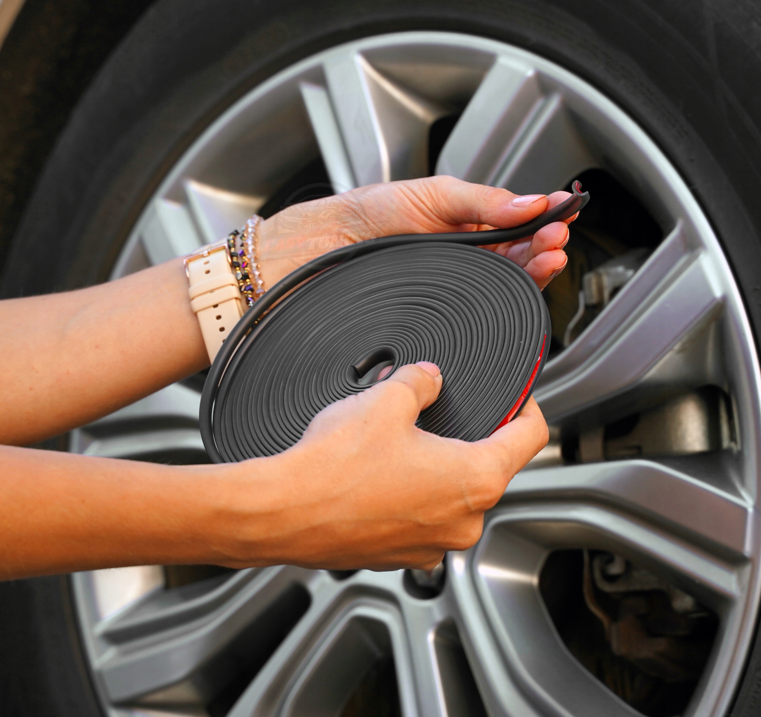 ДЕКОРАТИВНАЯ НАКЛАДКА ДЛЯ КОЛЕС АВТОМОБИЛЯ ТЮНИНГ ЧЕРНАЯ 8 МЕТРОВ НА 4 КОЛЕСА