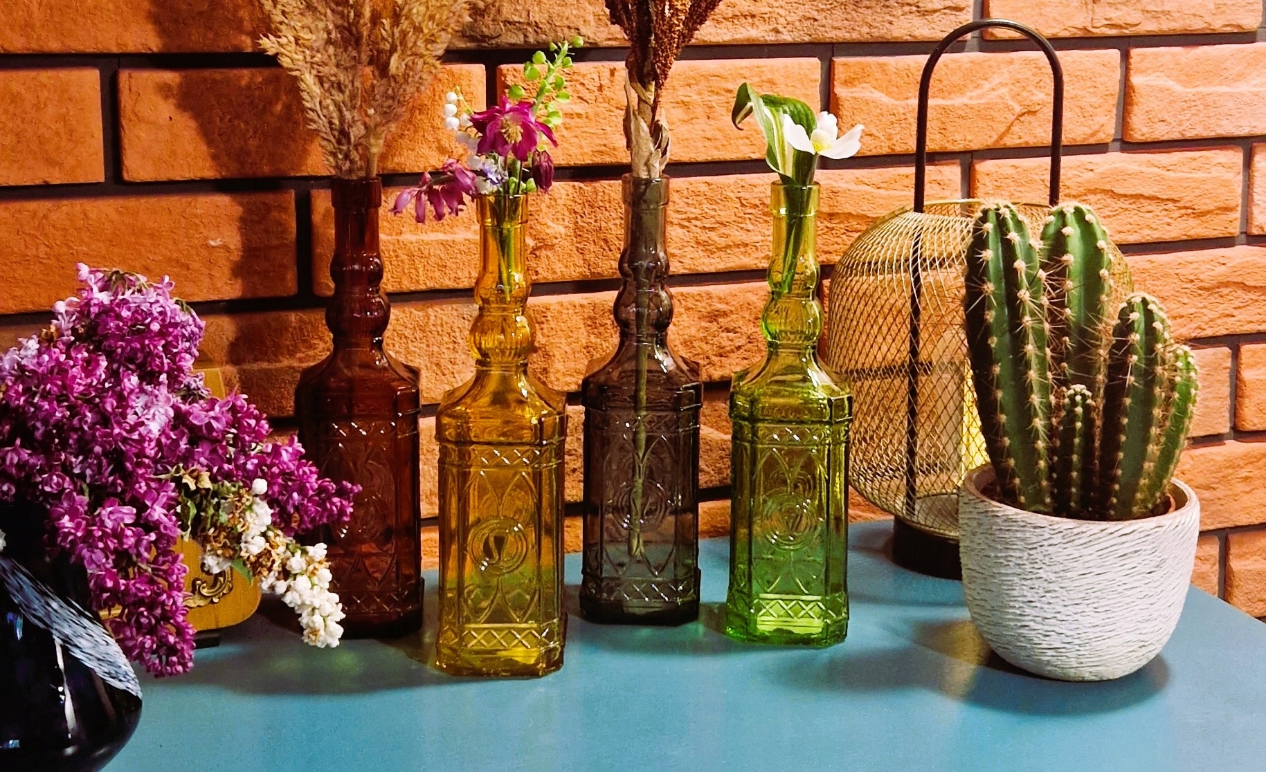 Декоративная бутылка изготовлена из толстого переработанного стекла ♻️ с эффектным тиснением. Классическая форма и нежный оттенок золота вазы гармонируют со многими стилями интерьера: от классики, ретро, бохо до винтажа. В качестве украшения дома или сада во время летних встреч – декоративная бутылка подойдет везде, где нужно добавить обстановке элегантности и шарма.