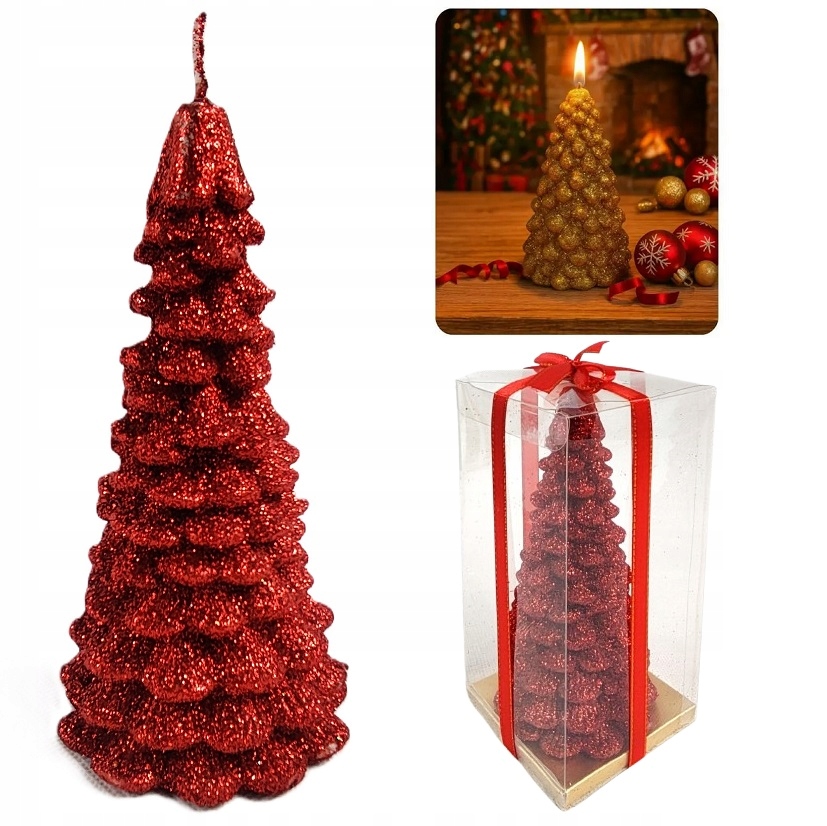 ДЕКОРАТИВНАЯ СВЕЧА РОЖДЕСТВЕНСКАЯ ЕЛКА свеча с красным блеском РОЖДЕСТВЕНСКОЕ УКРАШЕНИЕ