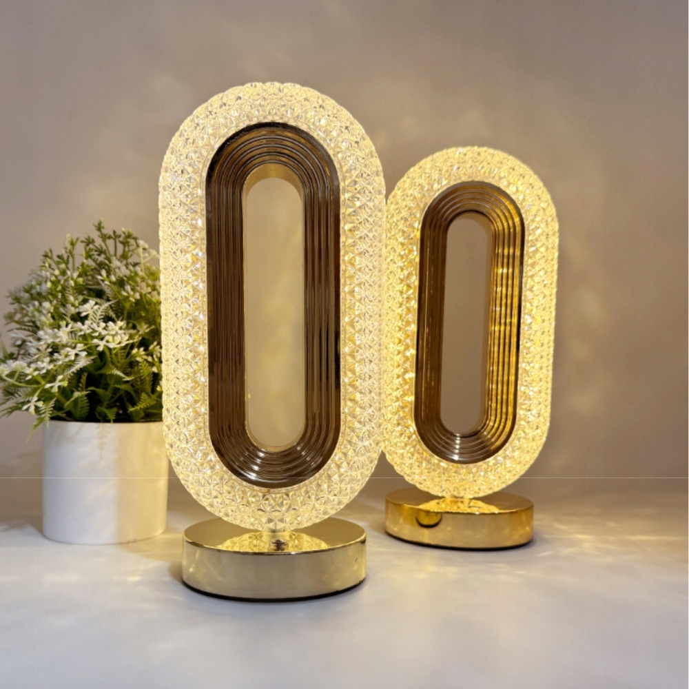 ✴ Основание, сделанное с оттенком золота и акрилового абажура, имитирующего хрустальную отделку, идеально подходящую как декоративный элемент в гостиной, спальне, офисе или ресторане.