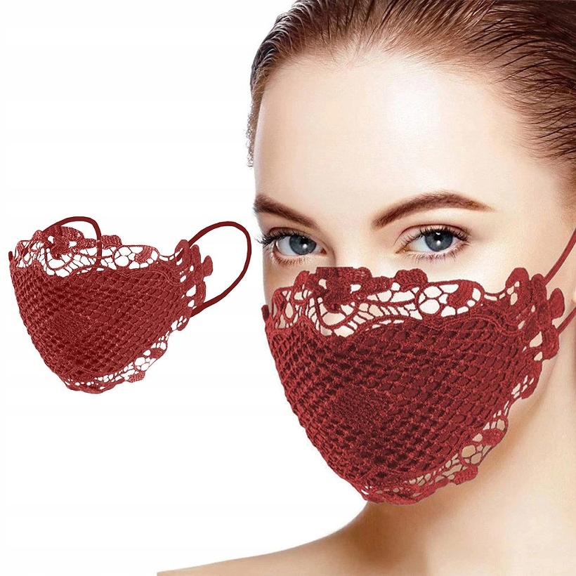 ЗАЩИТНАЯ МАСКА, УКРАШЕННАЯ КРАСНЫМ КРУЖЕВОМ.