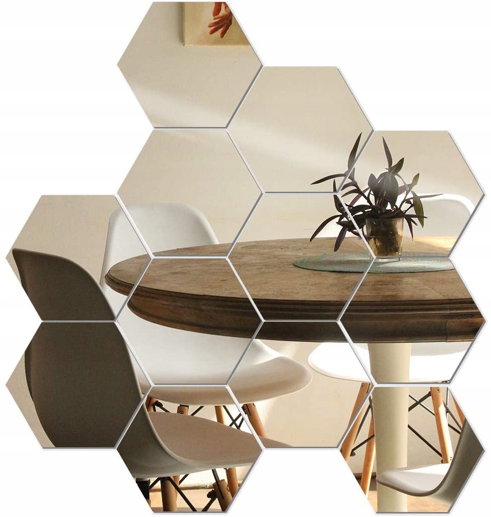 Зеркало, состоящее из 12 зеркальных шестигранников, позволяет создать самостоятельную композицию на стене или другой ровной поверхности.