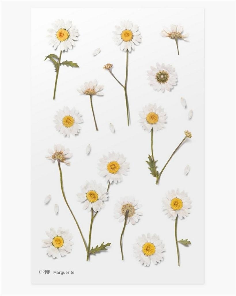 Декоративные наклейки-цветы Маргаретки. Чрезвычайно реалистичные наклейки, идеально воспроизводящие засушенные растения. Они изготовлены из материала ПЭТ, обеспечивающего высокую прочность и точную форму. Идеальная растушевка и матовый оттенок дают естественный эффект после наклеивания. Вы можете использовать их дома, в офисе, в ежедневниках и книгах. Их также можно фантастически и творчески использовать для скрапбукинга и ведения дневника.