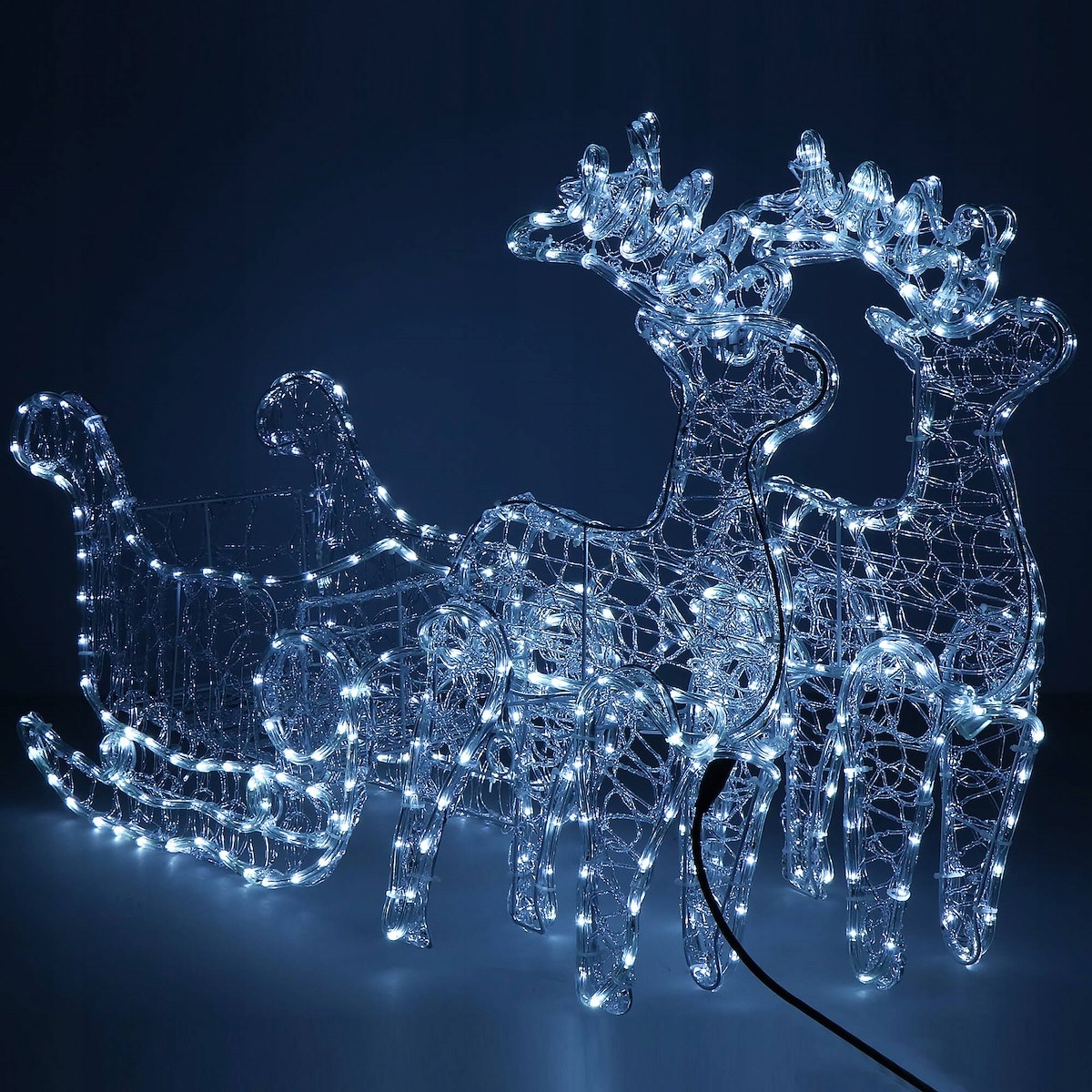 Прочная гибкая крышка легкой цепи имеет толщину почти 9 мм и класс IP44 — параметр, указывающий на то, что вы легко можете разместить Светодиодных оленей как внутри, так и снаружи дома – в саду, на террасе, балконе. В комплект также входят металлические колышки, с помощью которых можно прикрепить оленя и сани к земле. Стабильная металлическая конструкция, обеспечивает постоянство формы установки.