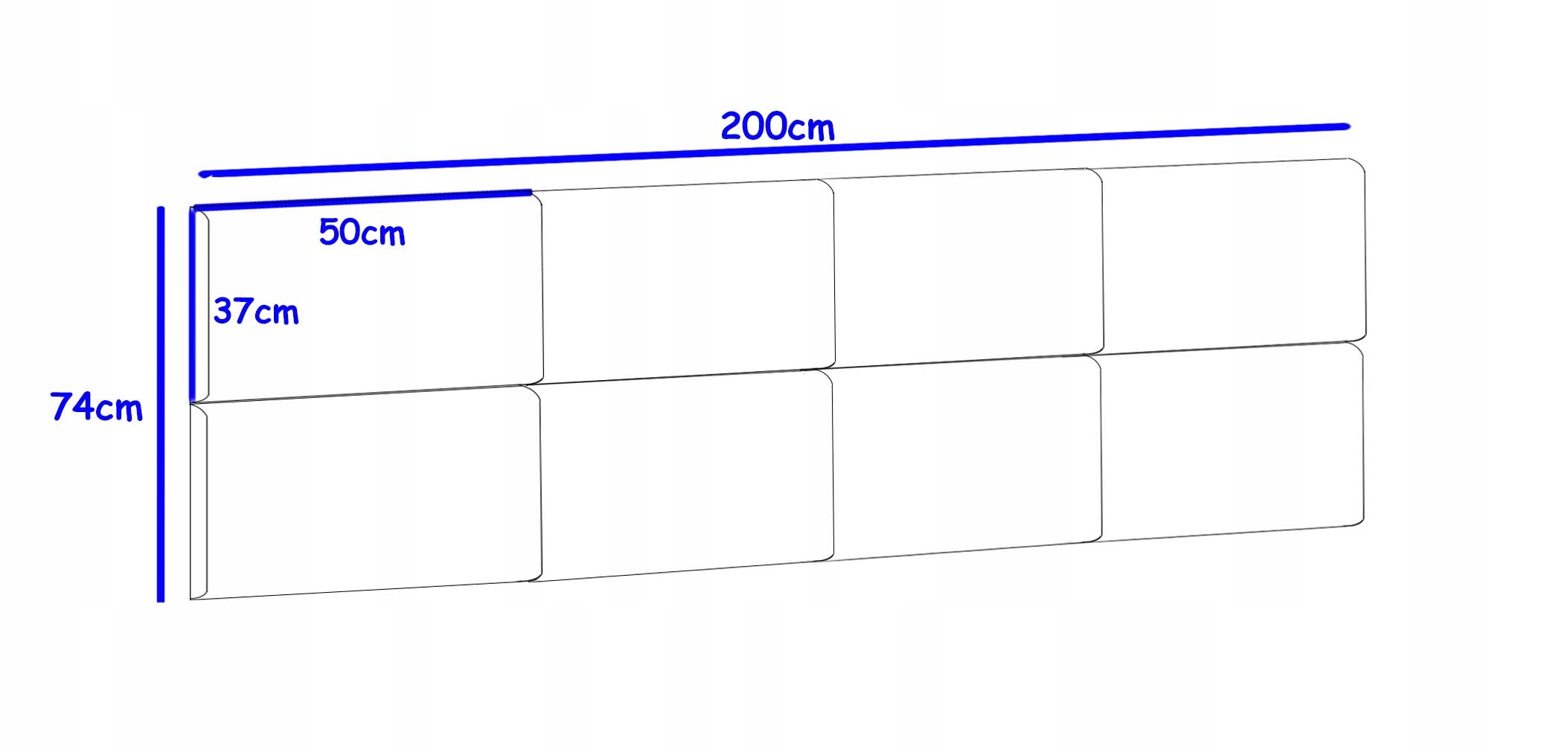 Набор из 8 обитых стеновых панелей, образующих изголовье кровати, размерами 200 x 74 x 5 см