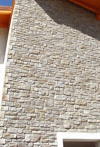 Представляет собой композицию плиток разного размера с неровными сторонами и расколотой каменной структурой. Это точная копия камня, найденного в горной части Италии, при укладке в швы создается эффект натуральной каменной стены.