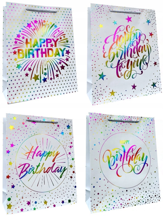 Каждый пакет украшен уникальным мотивом с днем рождения, что придает ему интересный внешний вид.