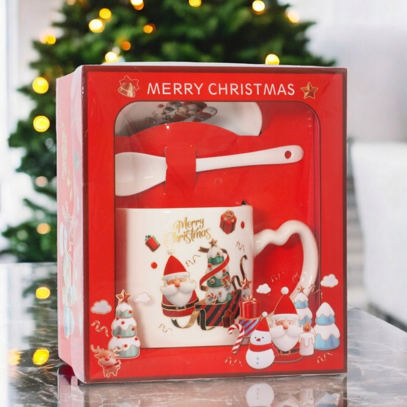 НАБОР ДЕКОРАТИВНЫХ РОЖДЕСТВЕНСКИХ КРУЖЕК С СОУСОМ И ЛОЖКОЙ 400 МЛ БЕСПЛАТНО