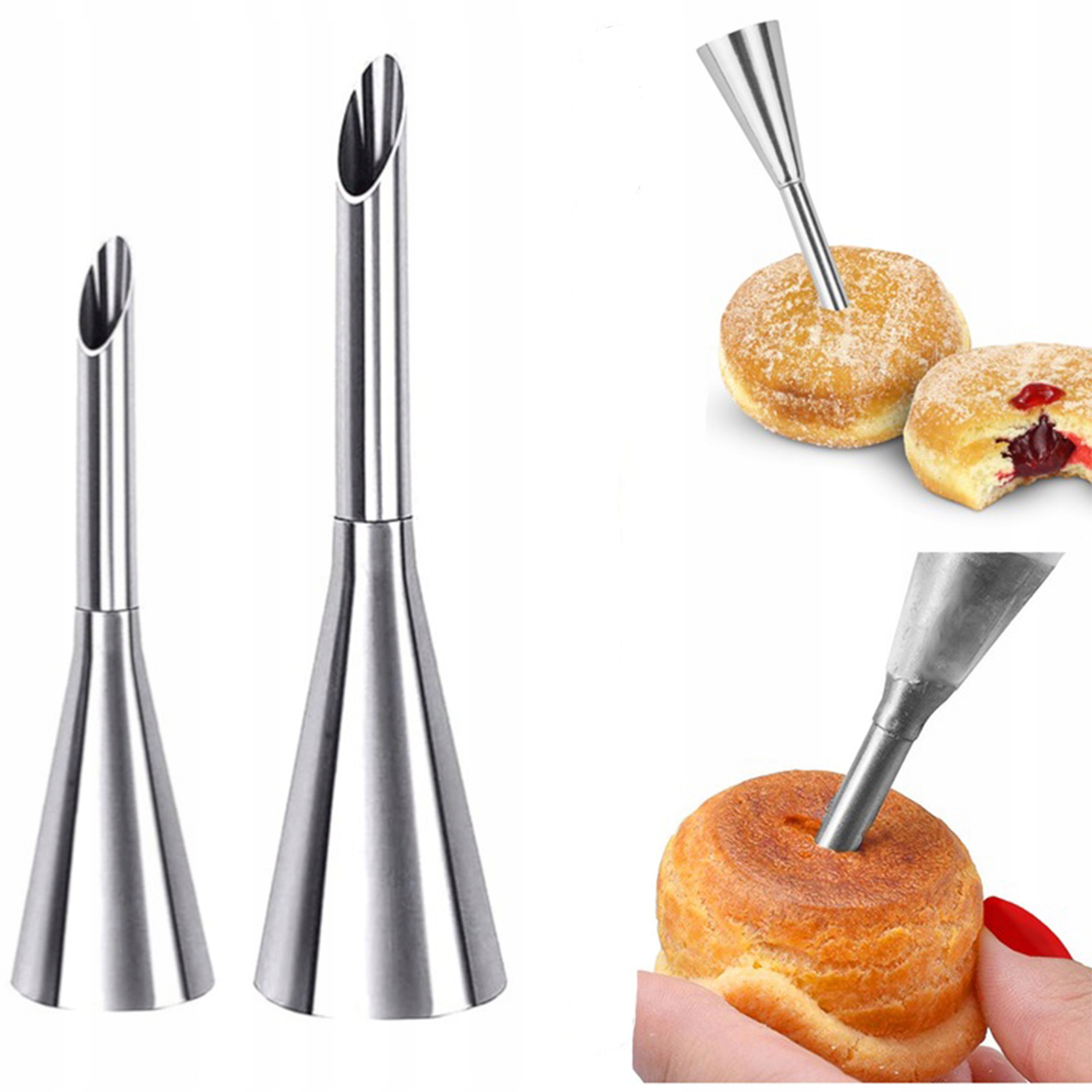 Насадка для начинки пончиков с длинным, скошенным наискось кончиком, позволяющим легко начинять пончики, не нарушая при этом форму. структура пончиков