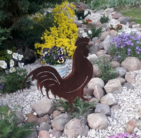 УКРАШЕНИЕ САДА Металлический петух на цветах для растений