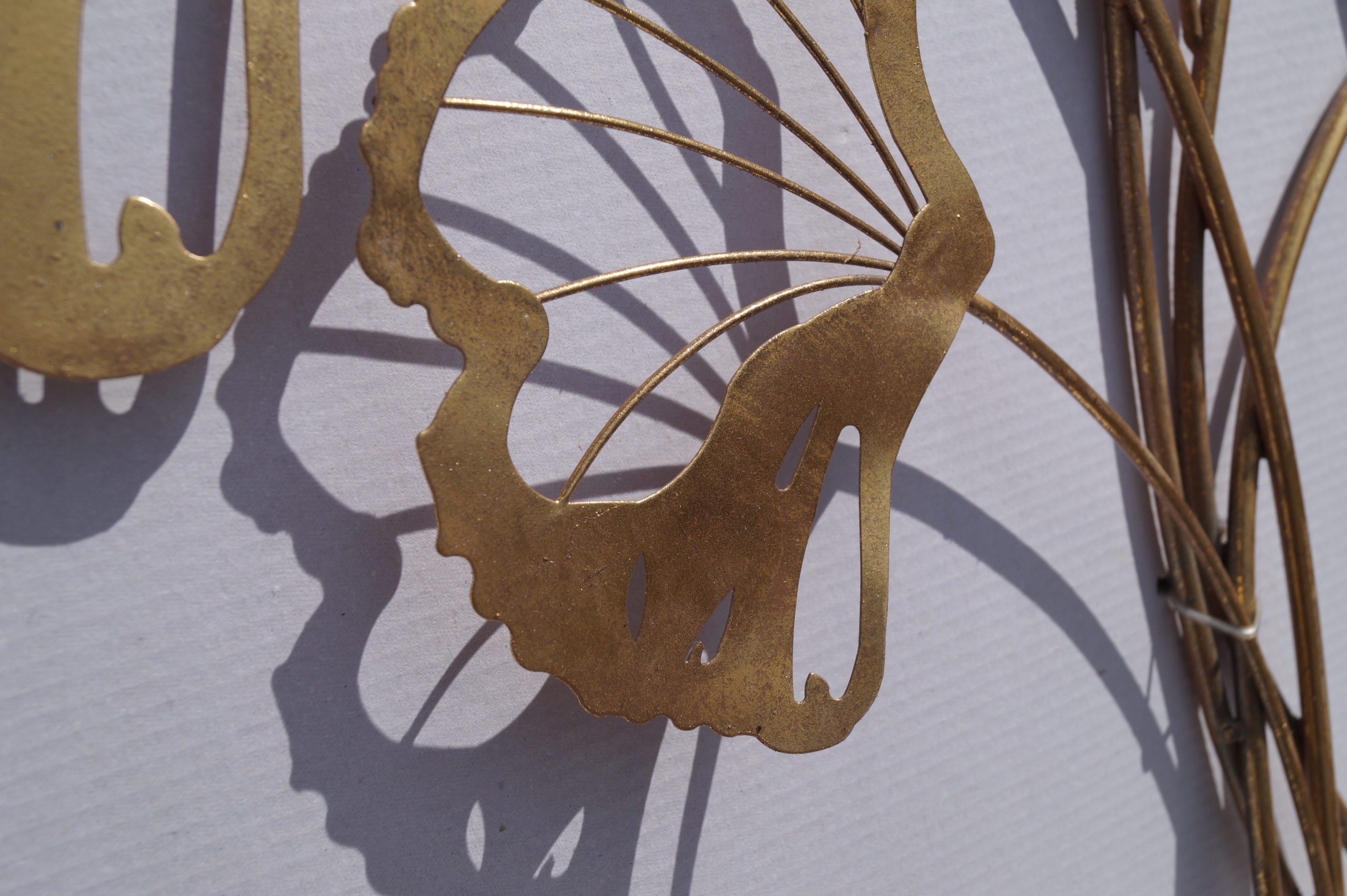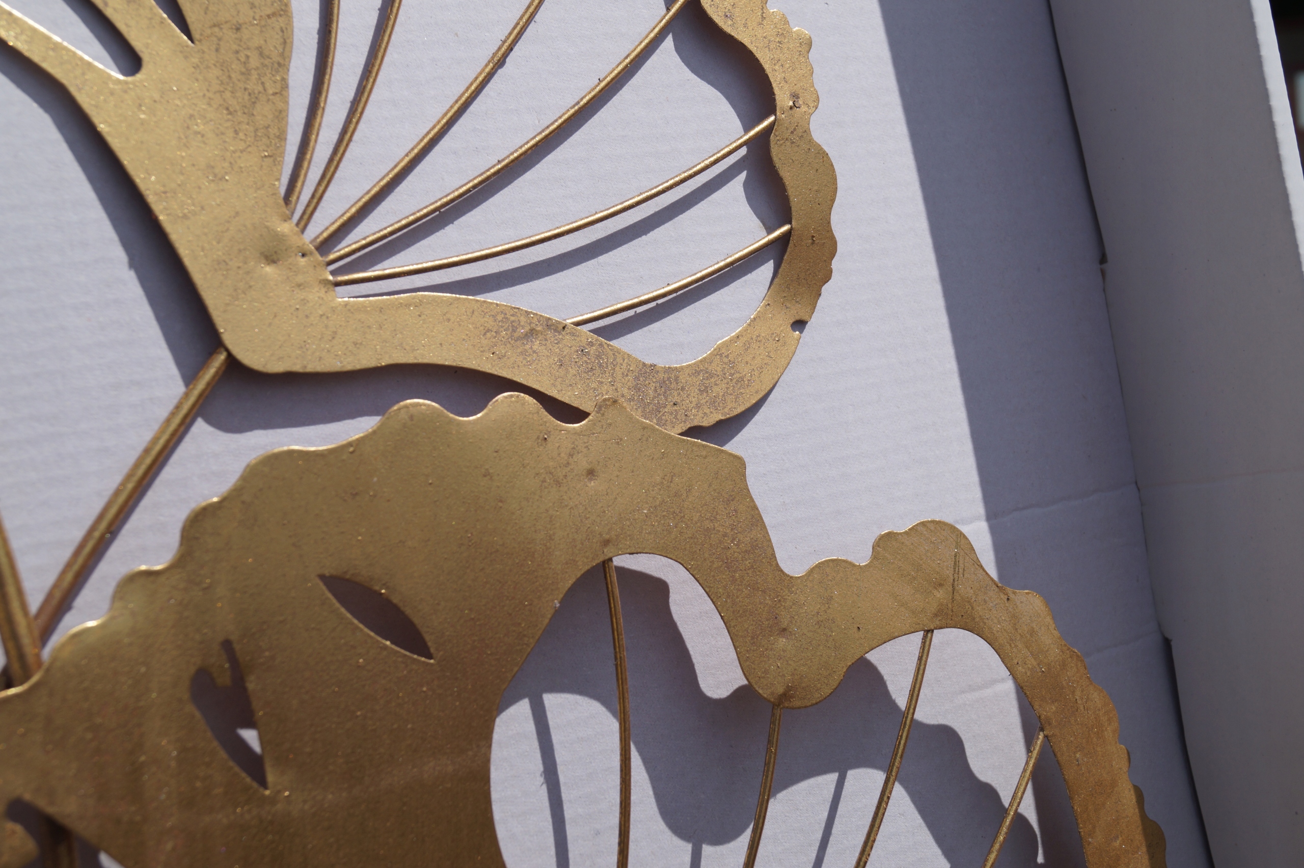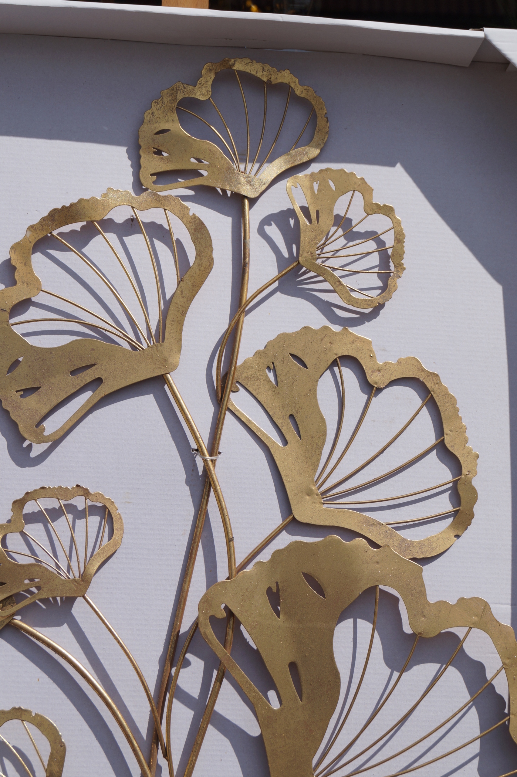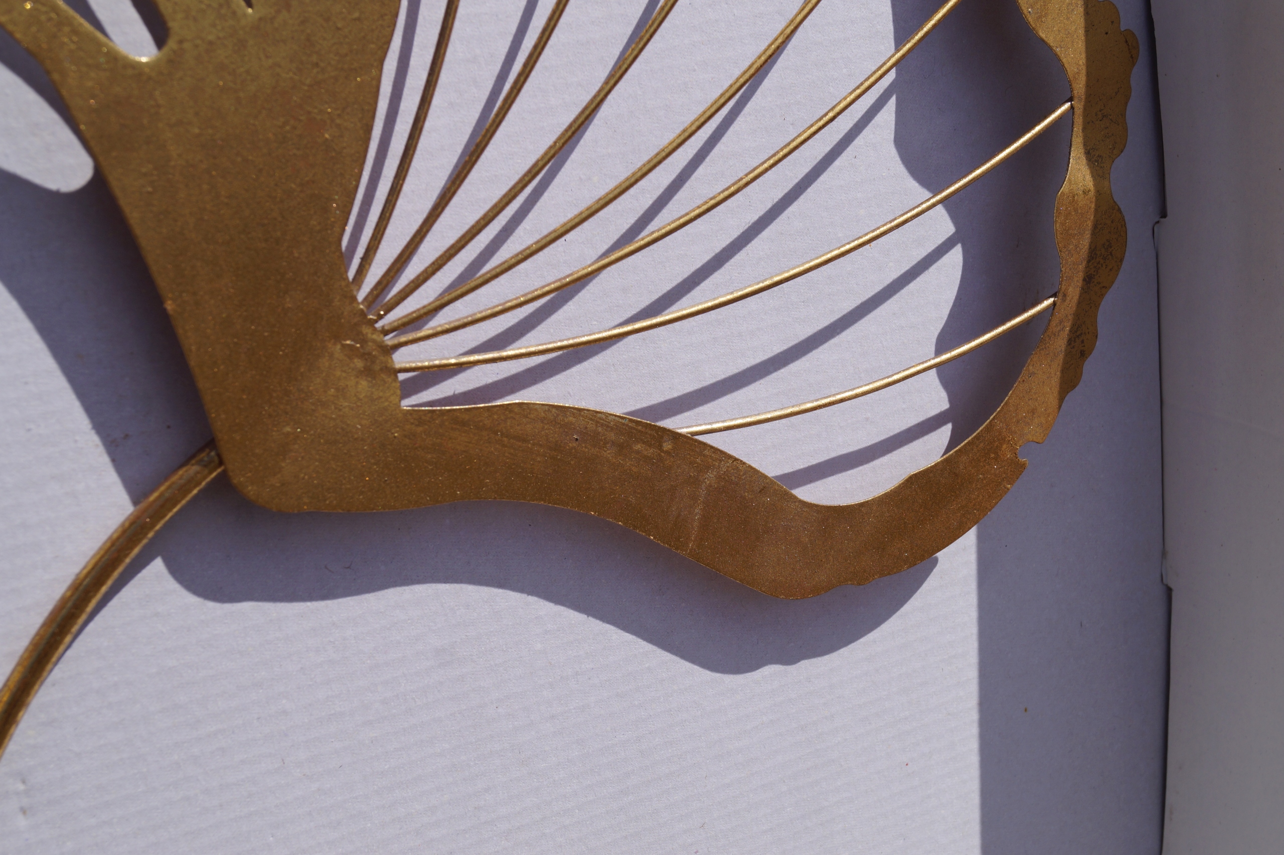 Металлическая настенная декорация с мотивом листьев гинкго, цвет золота.