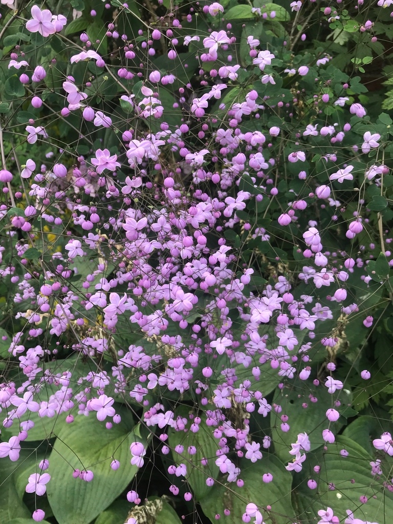 Рутека Делавая - великолепная, красивая многолетняя для посадки на окраине деревьев или в небольших группах среди редких кустарников. Происходит из Китая. Высокие стебли ок. 100-200 см, не очень жесткие, разветвленные, покрытые не очень большими листьями диаметром 2,5 см. С июля по сентябрь растение покрыто массой мелких цветов, собранных в великолепных метелках. Цветы имеют хлопья с лилией и желтые тычинки и выглядят красиво издалека (синий туманный эффект). Растение рекомендуется для посадки в качестве пасьянса,