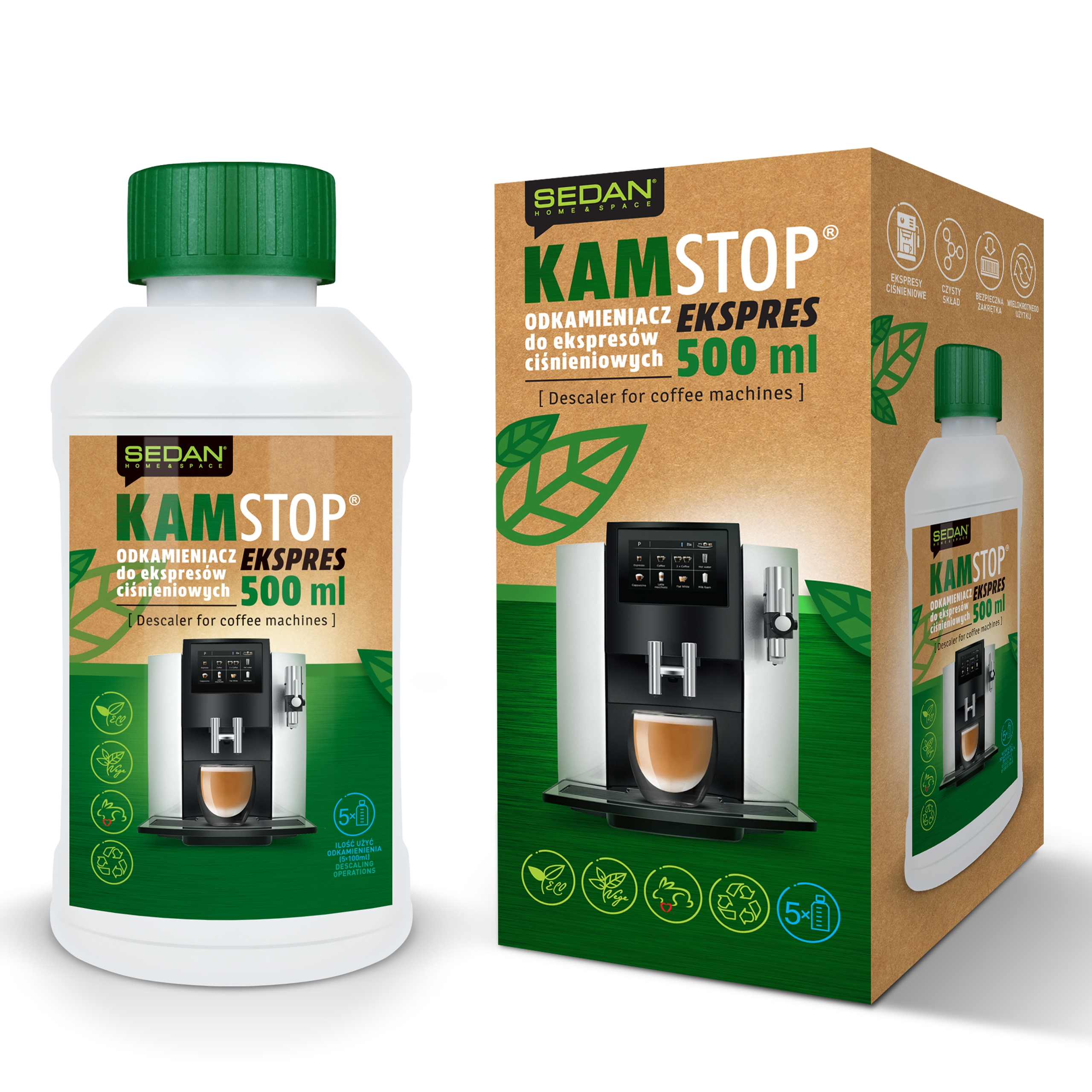 kamstop Express b>, является профессиональным агентом по удалению камня из автоматических кофейных машин. Экологический продукт на основе натуральной пищи лактегицины , является 100% экологически чистым и дополнительно борется с обстановкой известнякового отложения . Процесс удаления камня не является инвазивным для устройства и не влияет на вкус кофе. без лимонной, уксусной кислоты и минеральных кислот (например, амидосульфоническая). Упаковка достаточно, чтобы использовать 5.