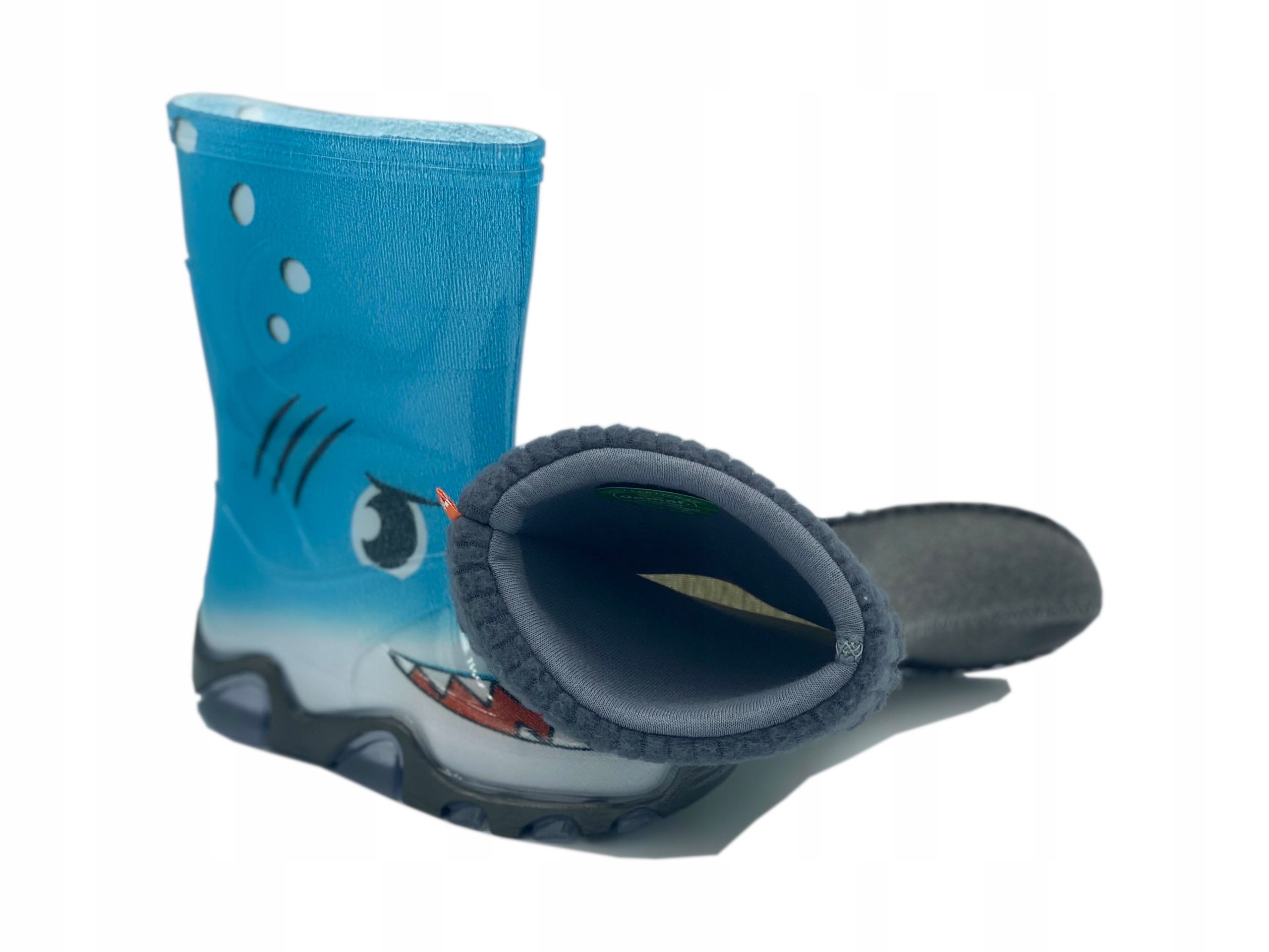 Непромокаемая обувь для детей, Изготовлен из материала ПВХ без фталатов (безфталатный ПВХ). Обувь не содержит тяжелых металлов, таких как кадмий, никель, свинец. Обувь оснащена светоотражающим элементом и практичной съемной изолирующей вставкой, которую можно стирать при температуре до 40 °C. Идеально подходит по дороге в школу или во время игры во дворе.