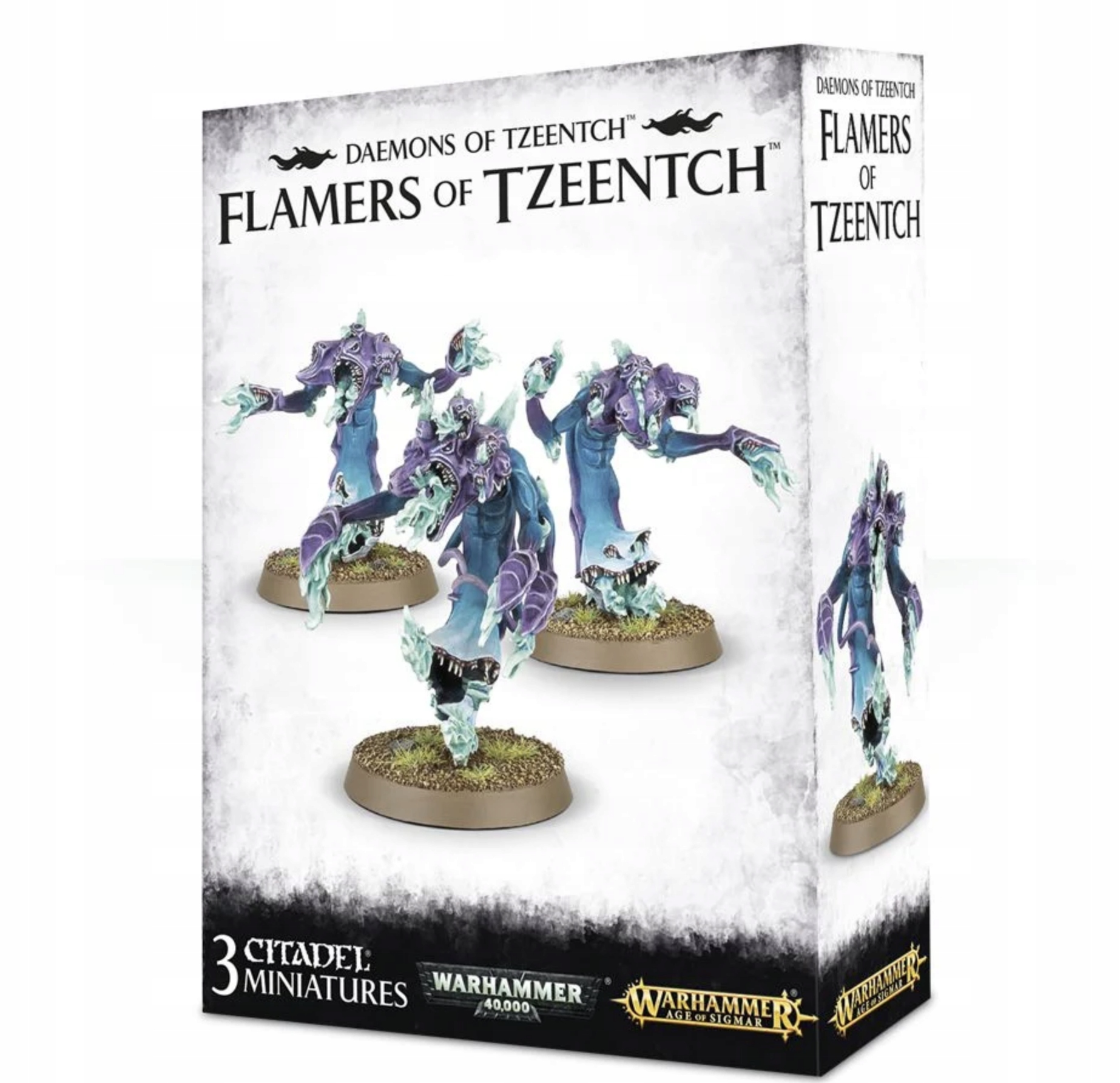 Этот пластиковый набор, состоящий из нескольких частей, содержит компоненты, необходимые для сборки трех огнеметов Тзинча, многоголовых волшебников, из грозных зубастых рук которых вырывается варп-огонь. Одну модель можно собрать как Пирокастер, который, по-видимому, больше сделан из огня, чем из плоти. Этот набор состоит из 36 деталей и включает в себя 3 круглые подставки Citadel диаметром 32 мм.