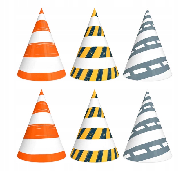 - Пакет содержит 3 типа шапок на темы, связанные со строительством и ремонтом дорог. Есть шапки, похожие на дорожный конус, шапки цвета дорожных ограждений и цвета асфальтированной дороги с нарисованными белыми полосами. С какими разделами работ справятся участники?